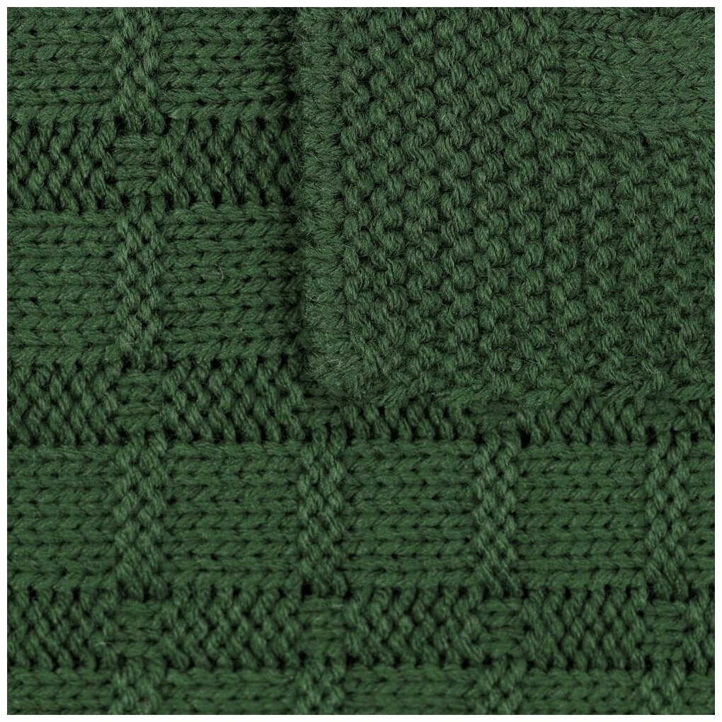 Плед новогодний вязаный подарочный интерьерный Sheerness темно-зеленый размер 110х160 см