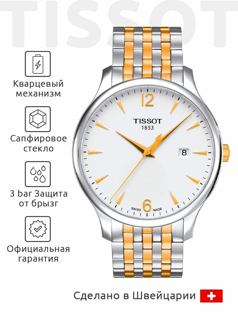 Швейцарские кварцевые часы Tissot Tradition T063.610.22.037.00 на стальном браслете, с водозащитой 3 бара и международной гарантией от производителя