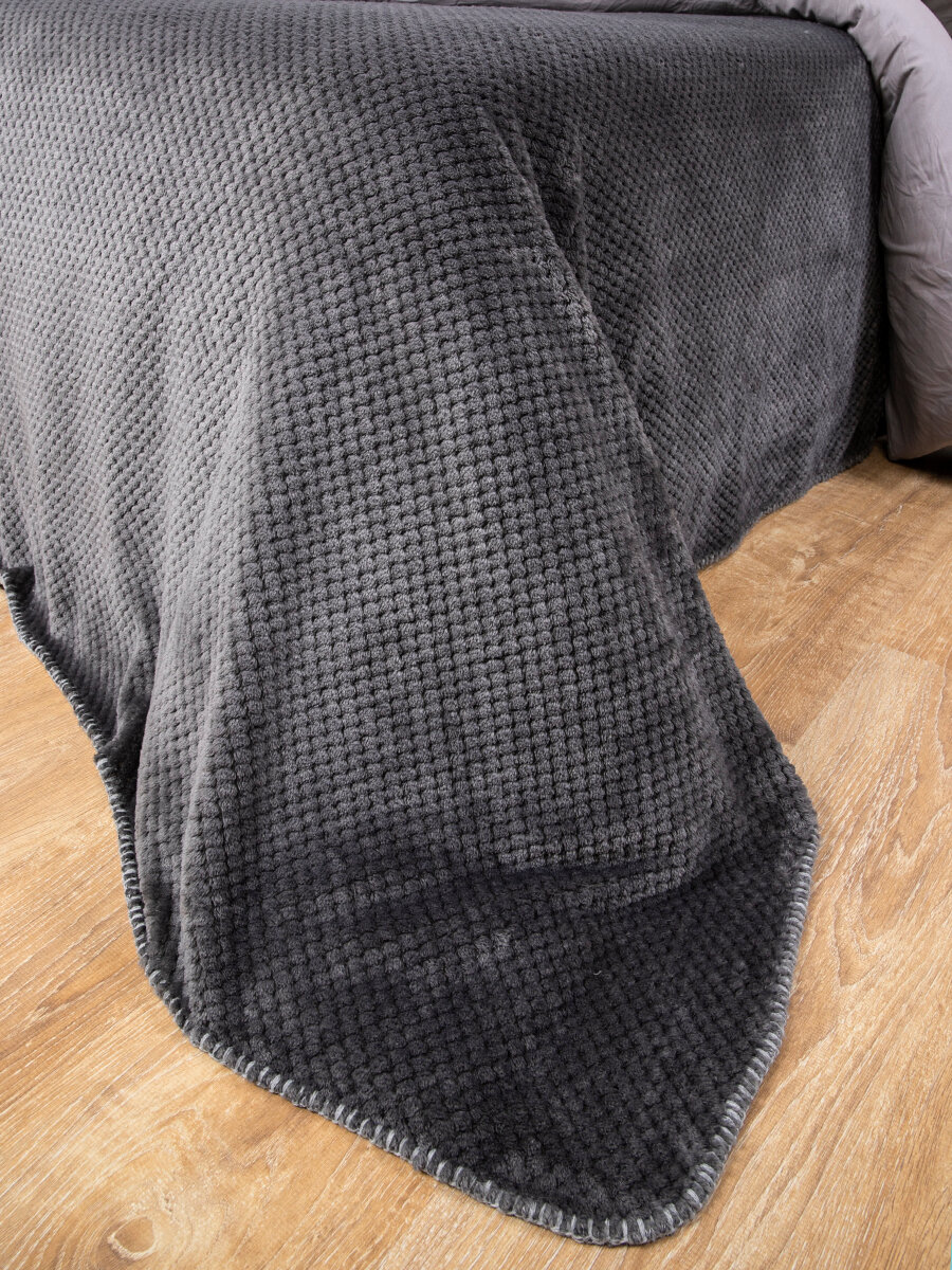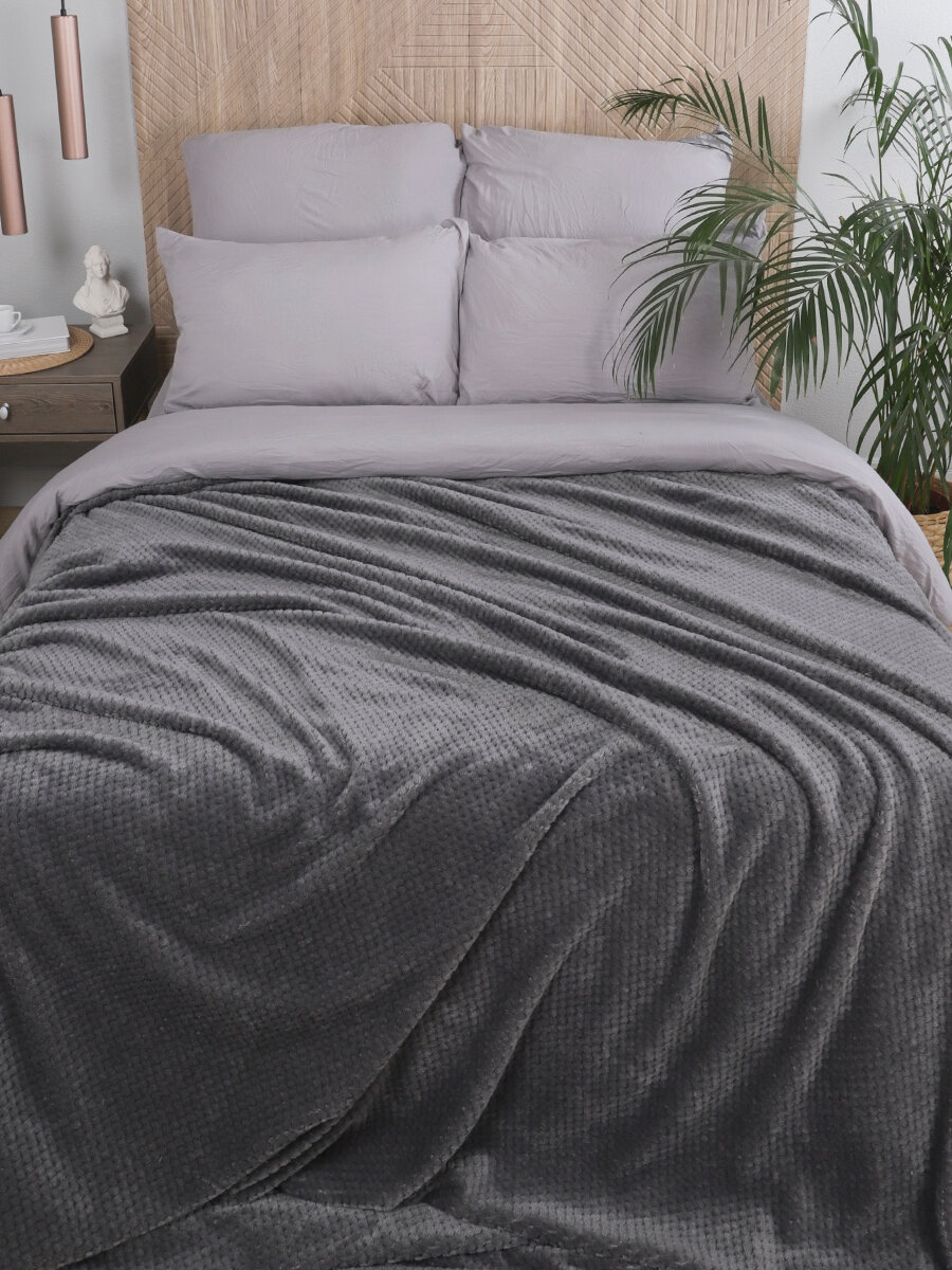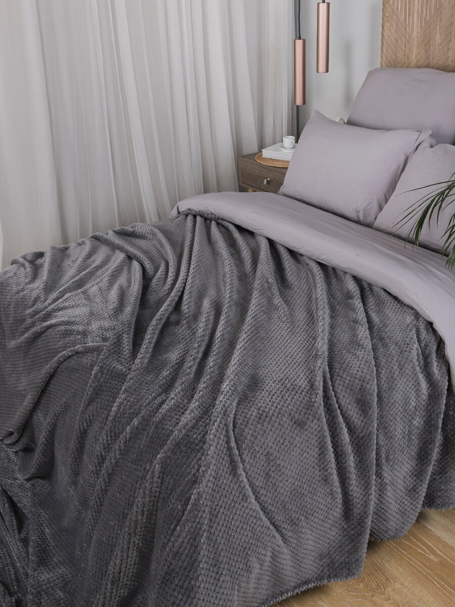 Покрывало 240х260 на кровать диван плюшевое плед, Tessolo Home, "Волна", графит темно-серый