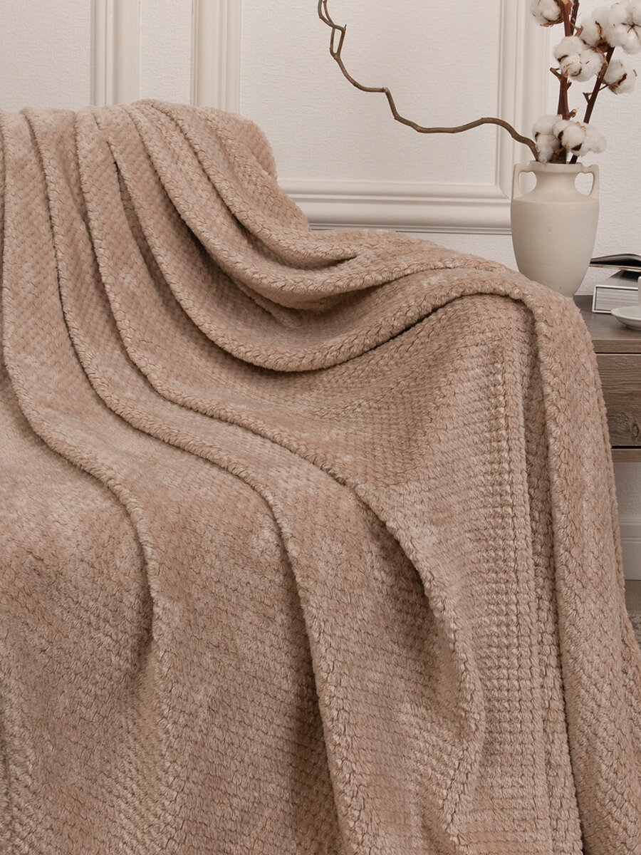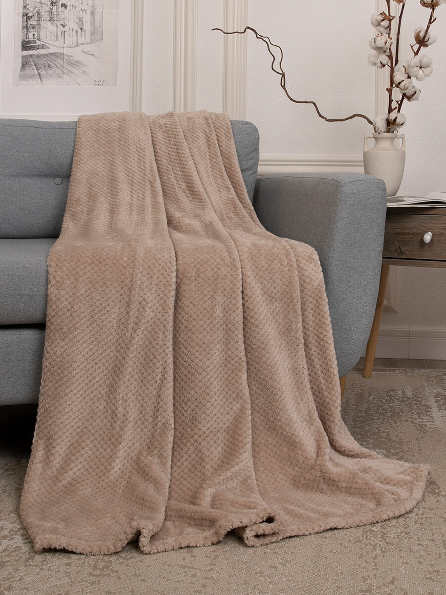 Покрывало 240х260 на кровать диван плюшевое плед, Tessolo Home, "Волна", бежевый
