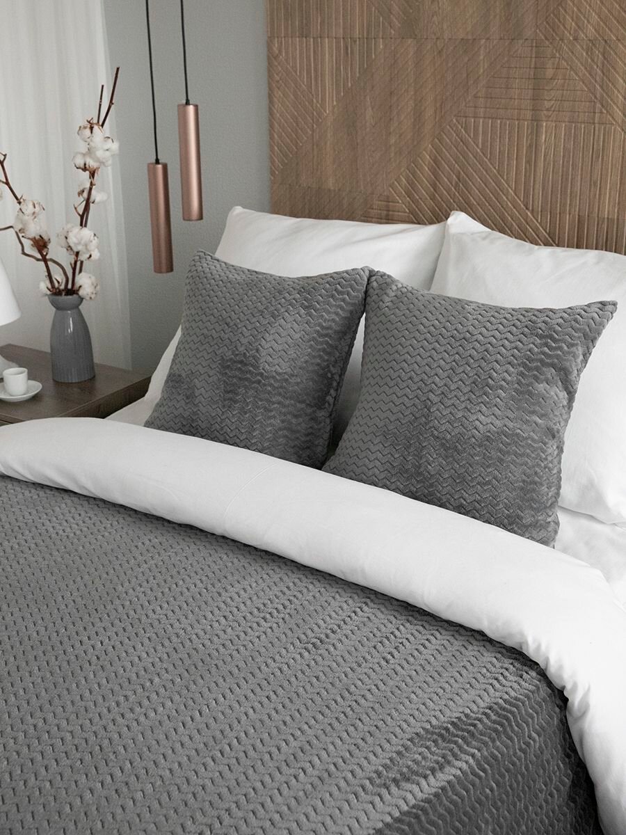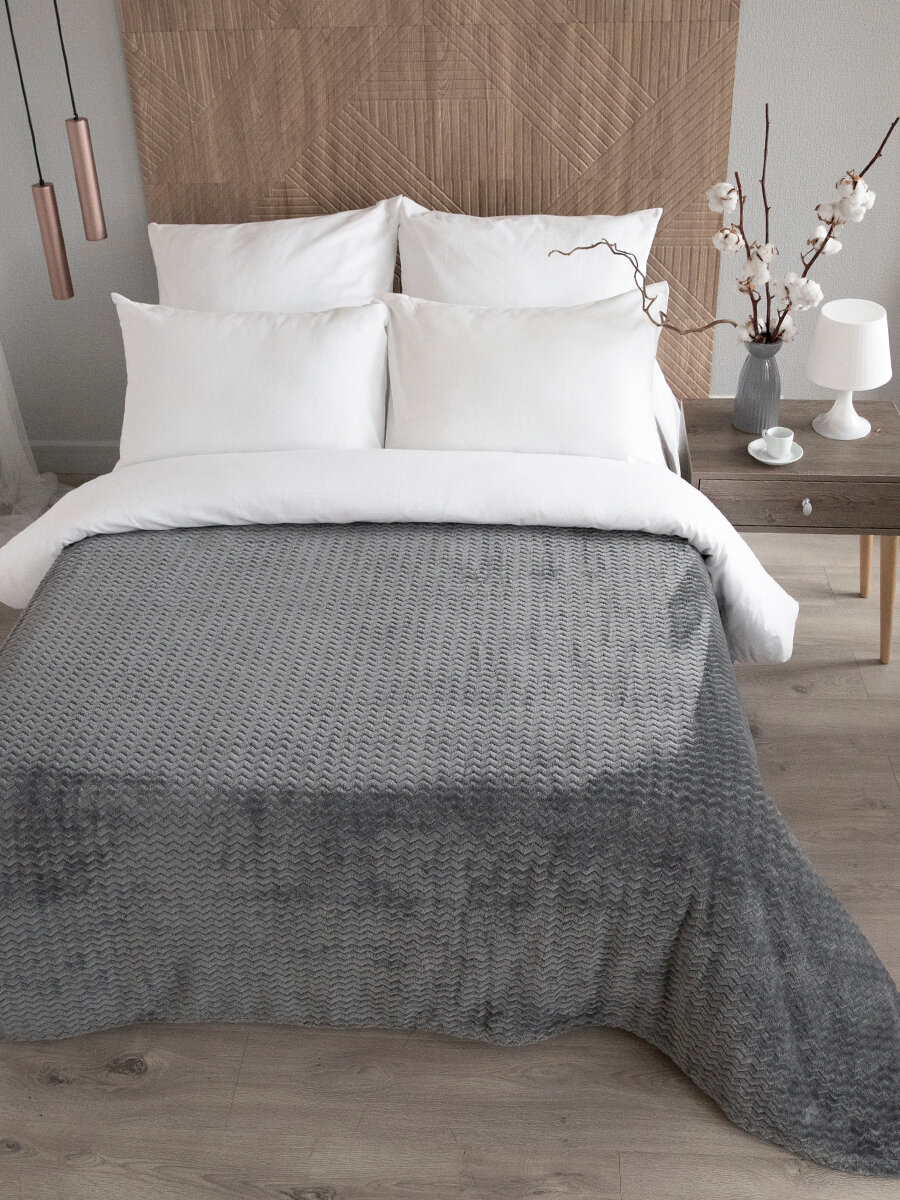 СохранитьПокрывало 240х260 на кровать диван плюшевое плед, Tessolo Home, "Волна", графит темно-серый интересное: