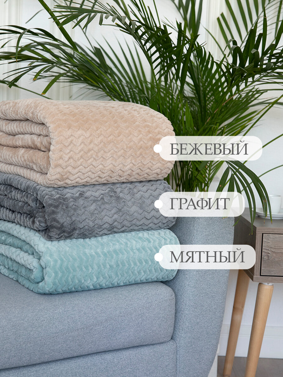 Покрывало 240х260 на кровать диван плюшевое плед, Tessolo Home, "Волна", бежевый