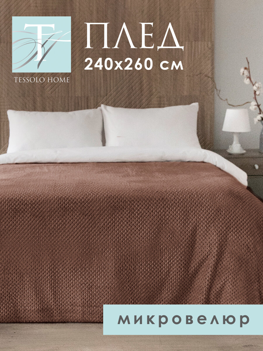 Купить Покрывало 240х260 на кровать диван плюшевое плед, Tessolo Home, "Жаккард", коричневый