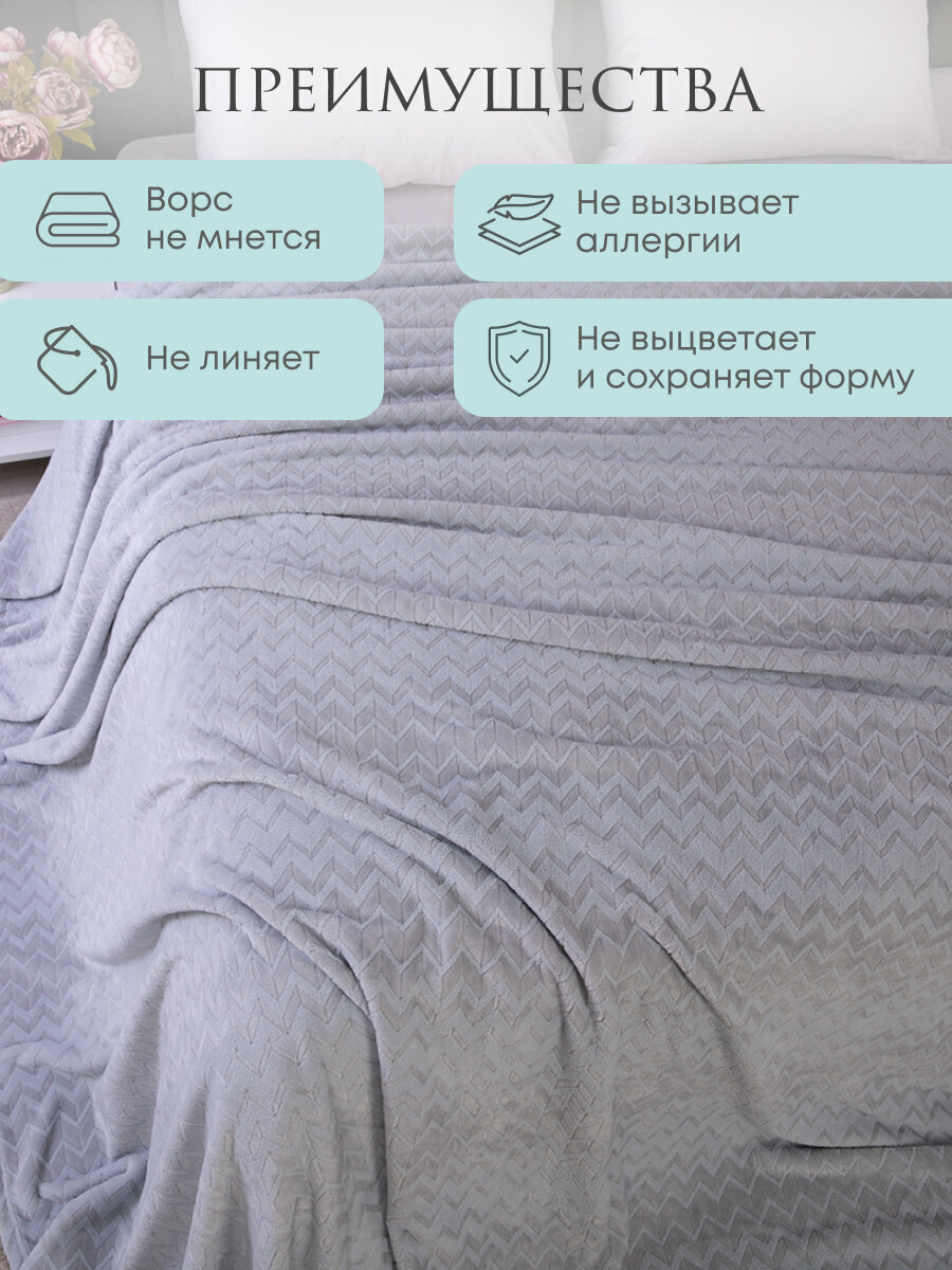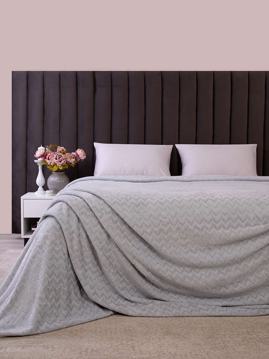 СохранитьПокрывало 240х260, Tessolo Home, на кровать диван плюшевое плед, MICRO VELUR, "Зигзаг", светло-серый интересное: