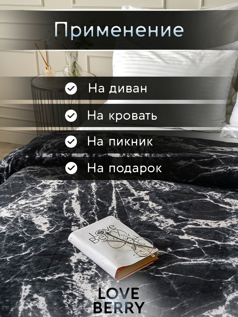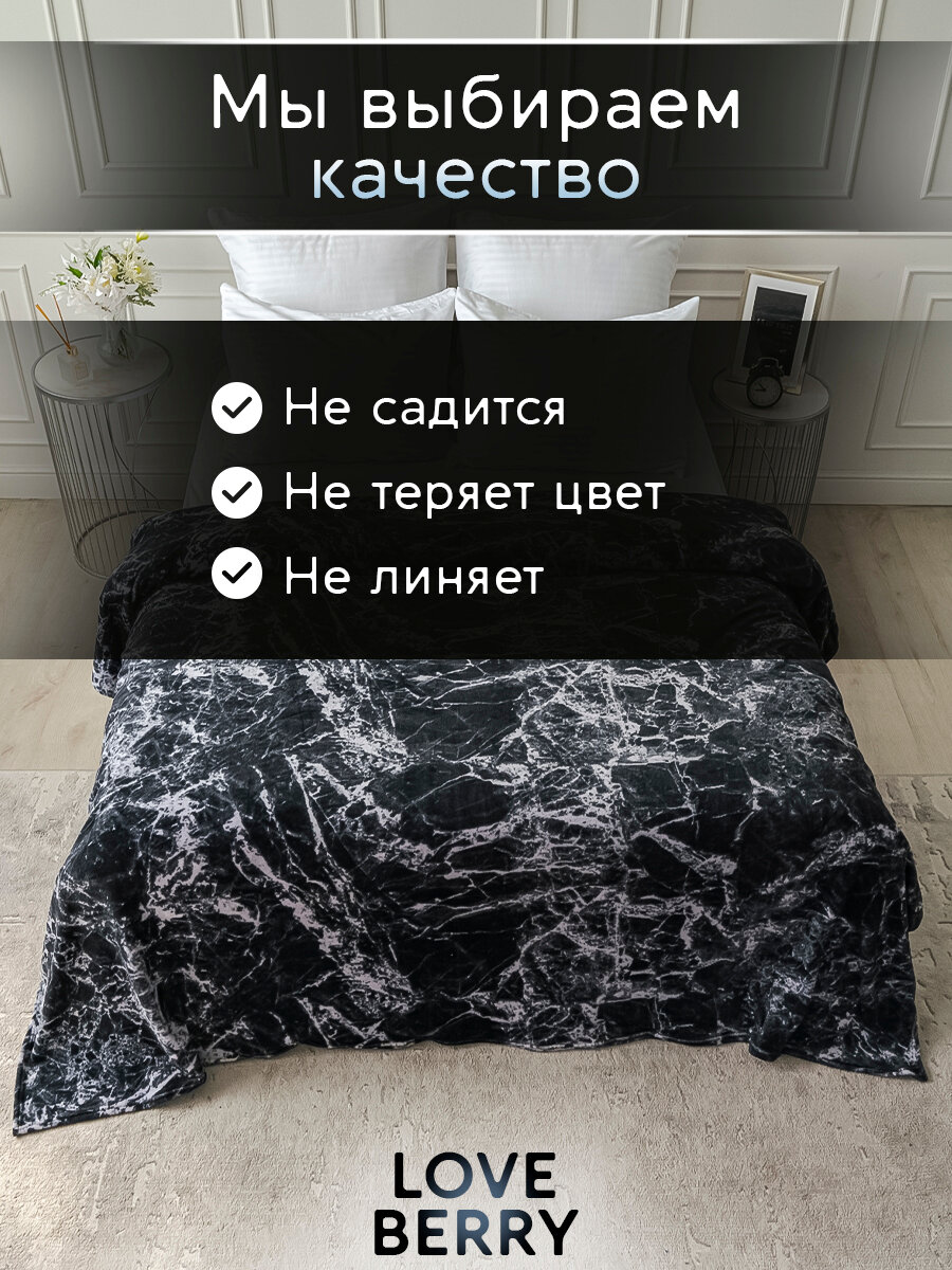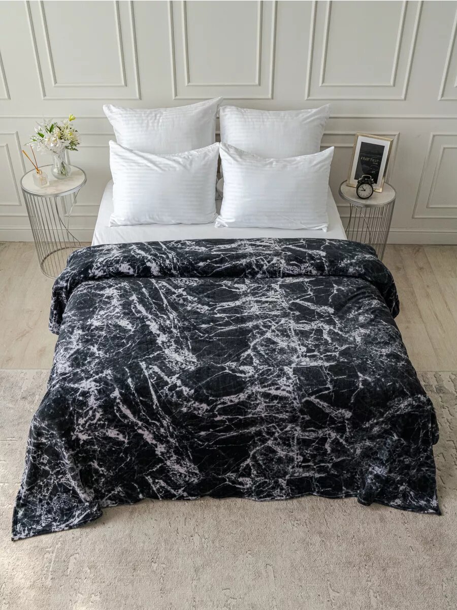 Купить Плед 200х220 LOVEBERRY Евро из велсофта на кровать и диван, черный мрамор