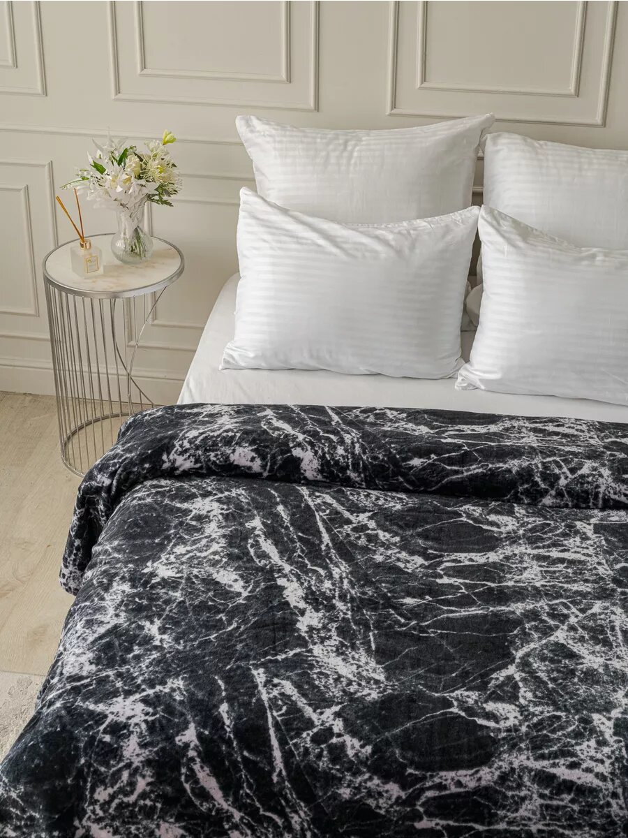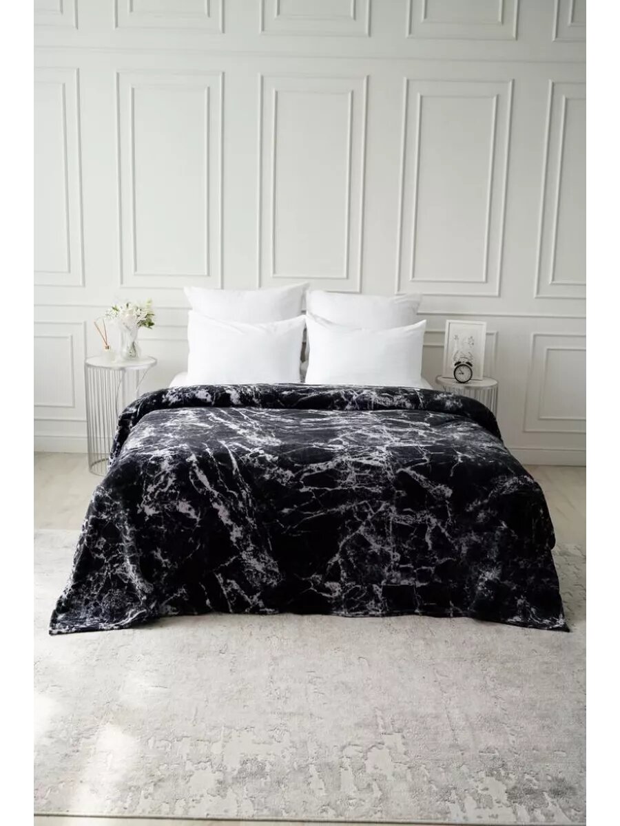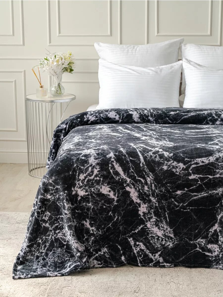 Купить Плед 200х220 LOVEBERRY Евро из велсофта на кровать и диван, черный мрамор