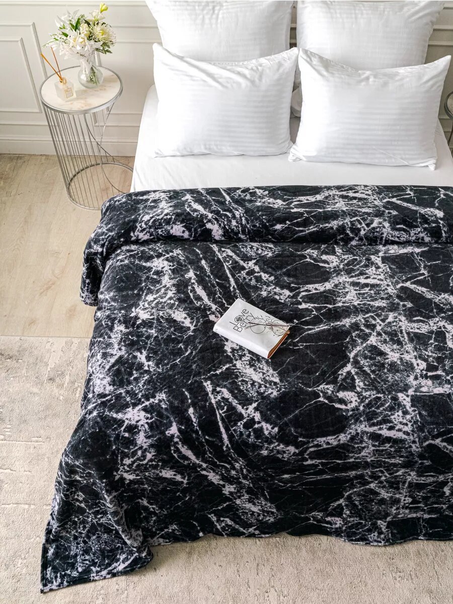 СохранитьПлед 200х220 LOVEBERRY Евро из велсофта на кровать и диван, черный мрамор интересное: