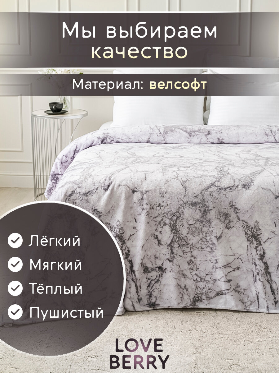 Плед 200х220 LOVEBERRY Евро из велсофта на кровать и диван, белый мрамор