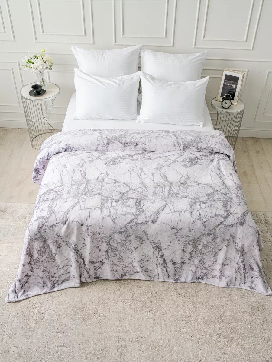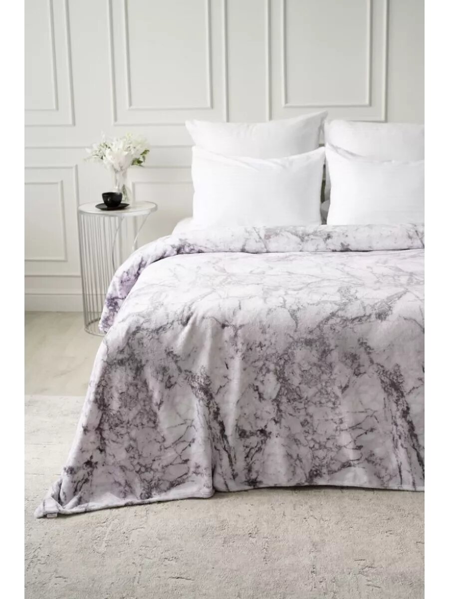 Купить Плед 150х200 LOVEBERRY из велсофта плюшевый на диван, белый мрамор, подарок маме
