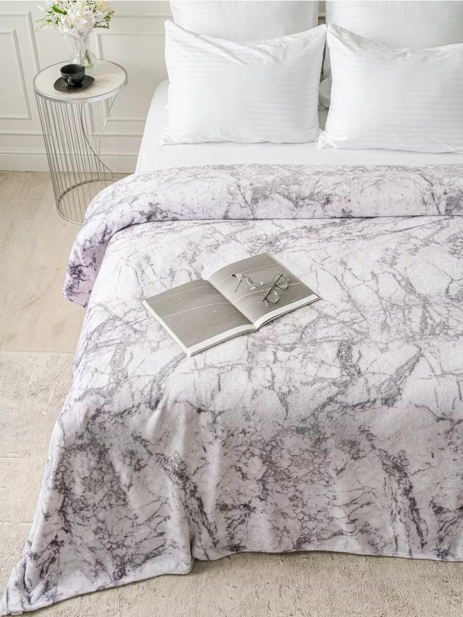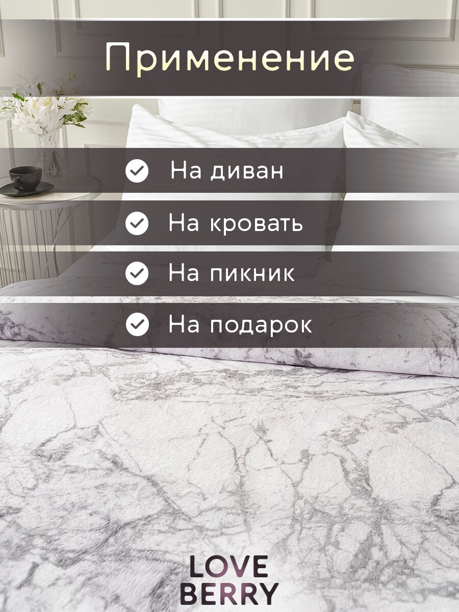 СохранитьПлед 150х200 LOVEBERRY из велсофта плюшевый на диван, белый мрамор, подарок маме интересное: