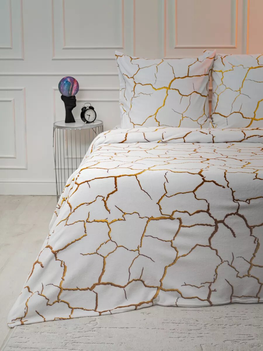 Плед 150х200 LOVEBERRY из велсофта плюшевый на диван, белый мрамор, подарок маме