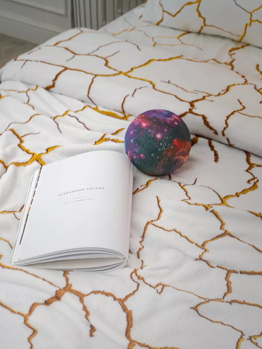 Плед 150х200 LOVEBERRY из велсофта, черный мрамор, подарок маме