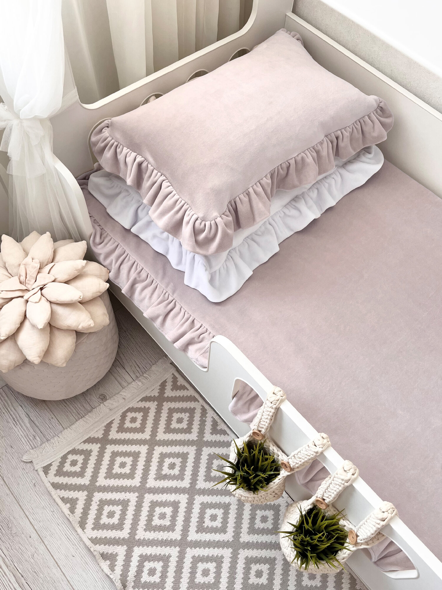 Купить Покрывало 100х180 см (с учетом рюш) детское из велюра на кровать, диван - опал