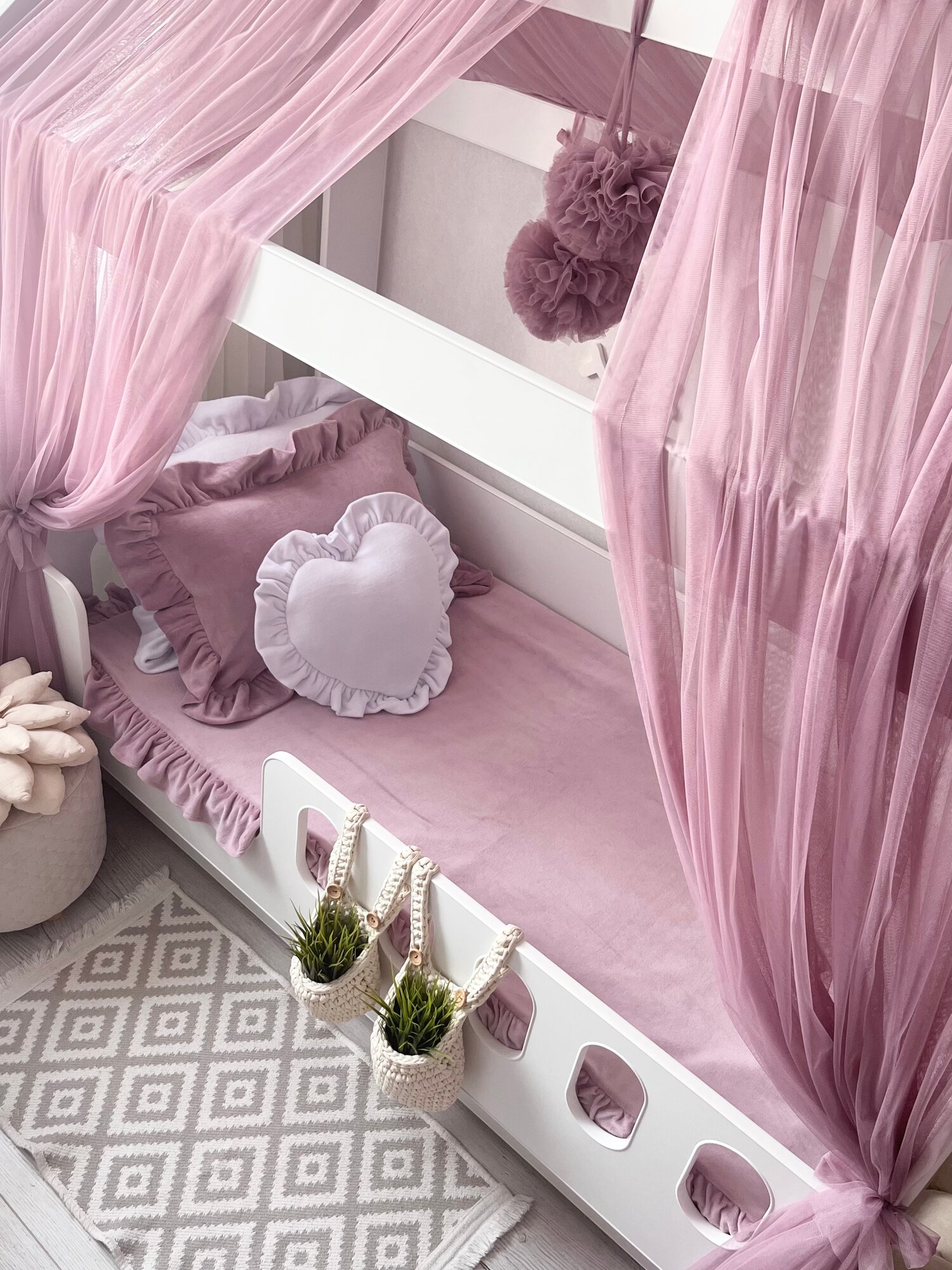 Покрывало 100х180 см (с учетом рюш) детское из велюра на кровать, диван - лиловый интересное: