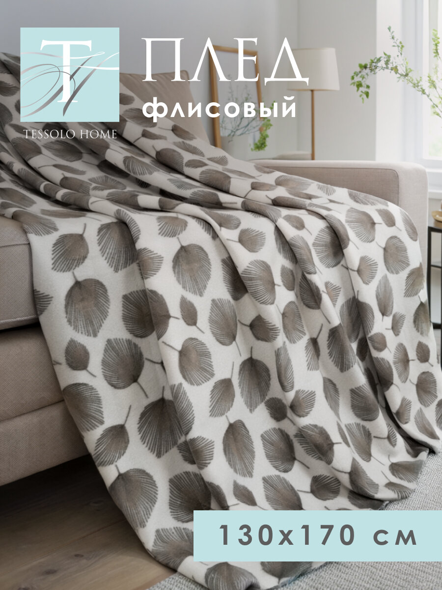 Плед флисовый 130х170 на кровать для пикника, Tessolo Home, "Areca", серый.