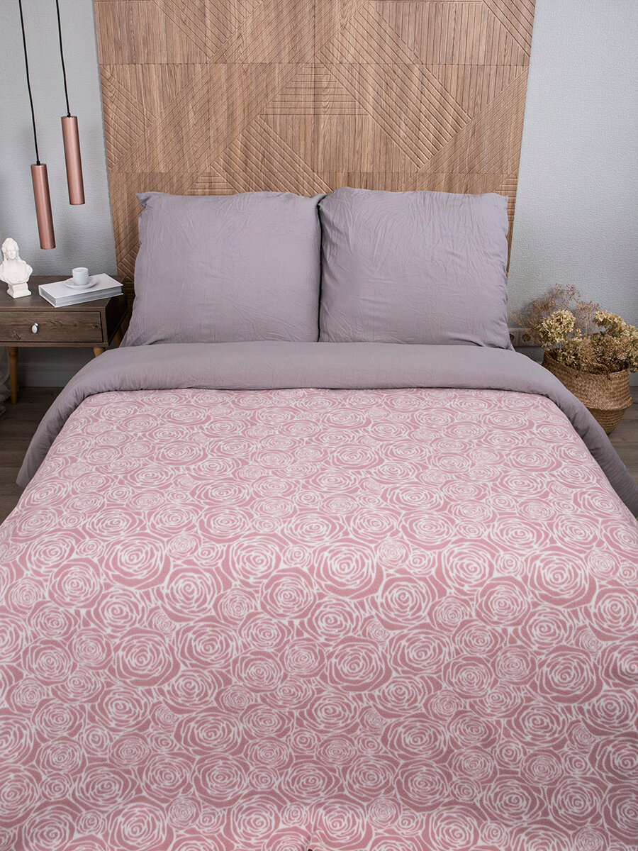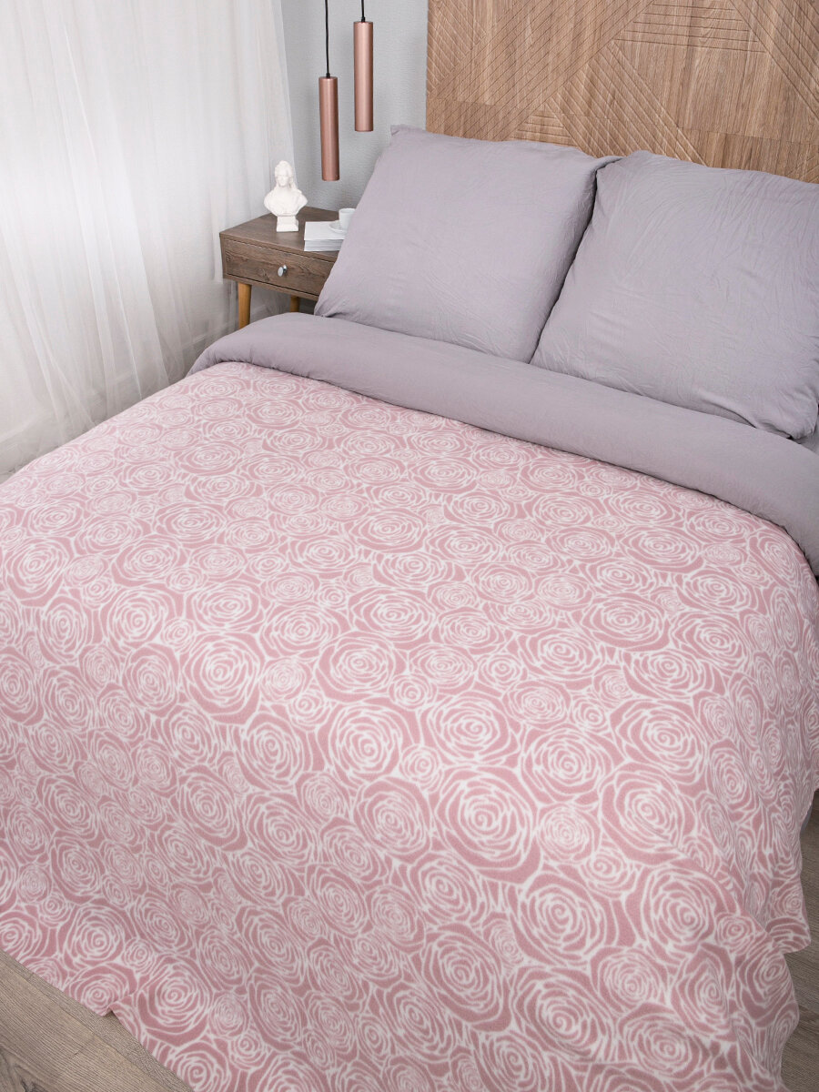 Плед флисовый 130х170, Tessolo Home, на кровать для пикника, Розы серый
