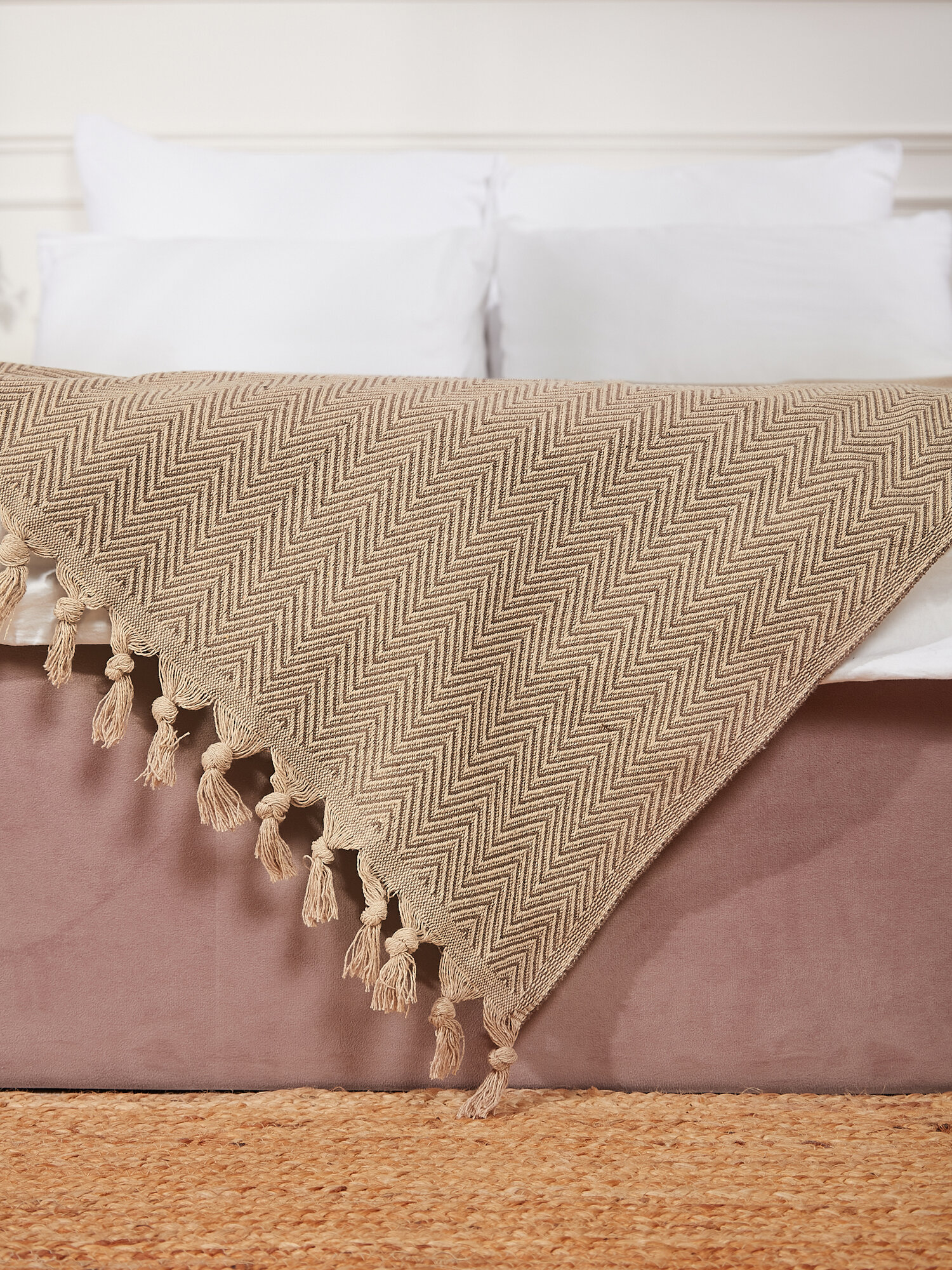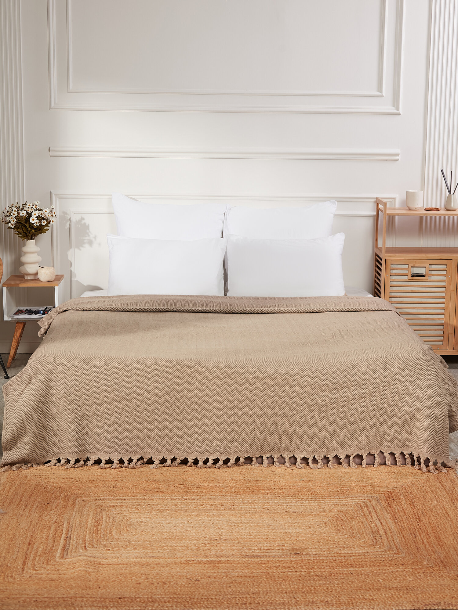 Хлопковый плед-покрывало на кровать и диван, 200х230, бежевый, Турция
