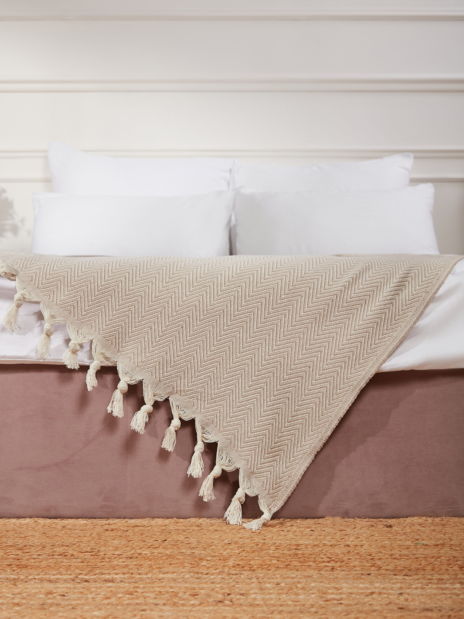 Купить Хлопковый плед-покрывало на кровать и диван, 200х230, бежевый, Турция