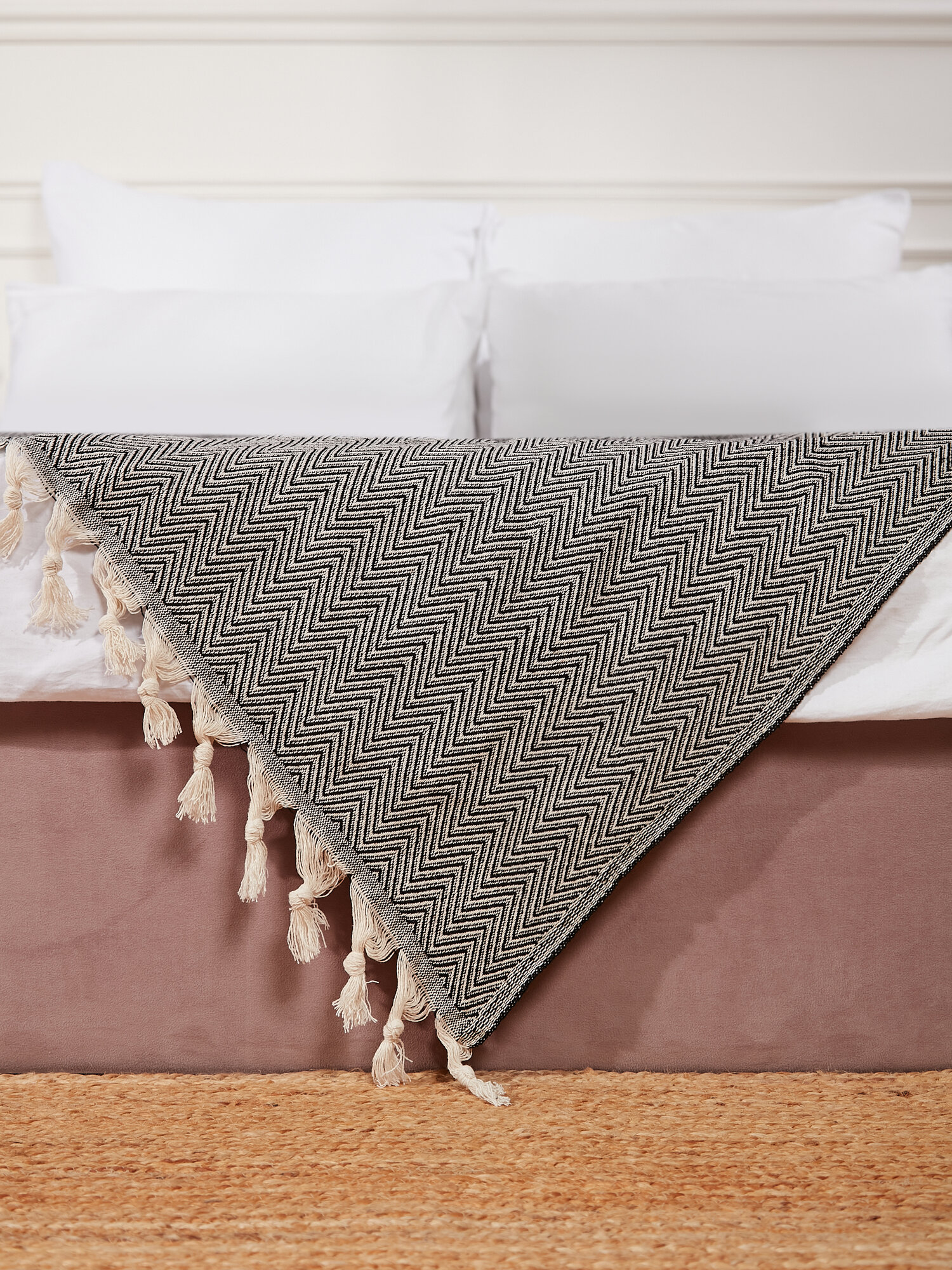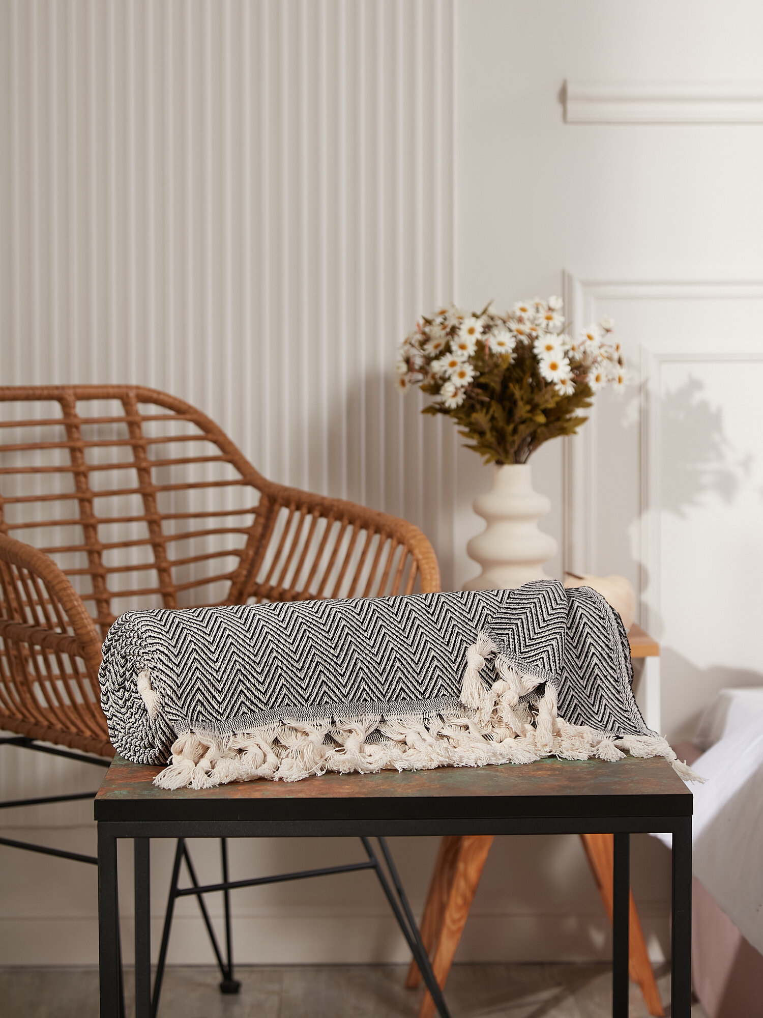 Купить Хлопковый плед-покрывало на кровать и диван, 200х230, черно-белый, Турция