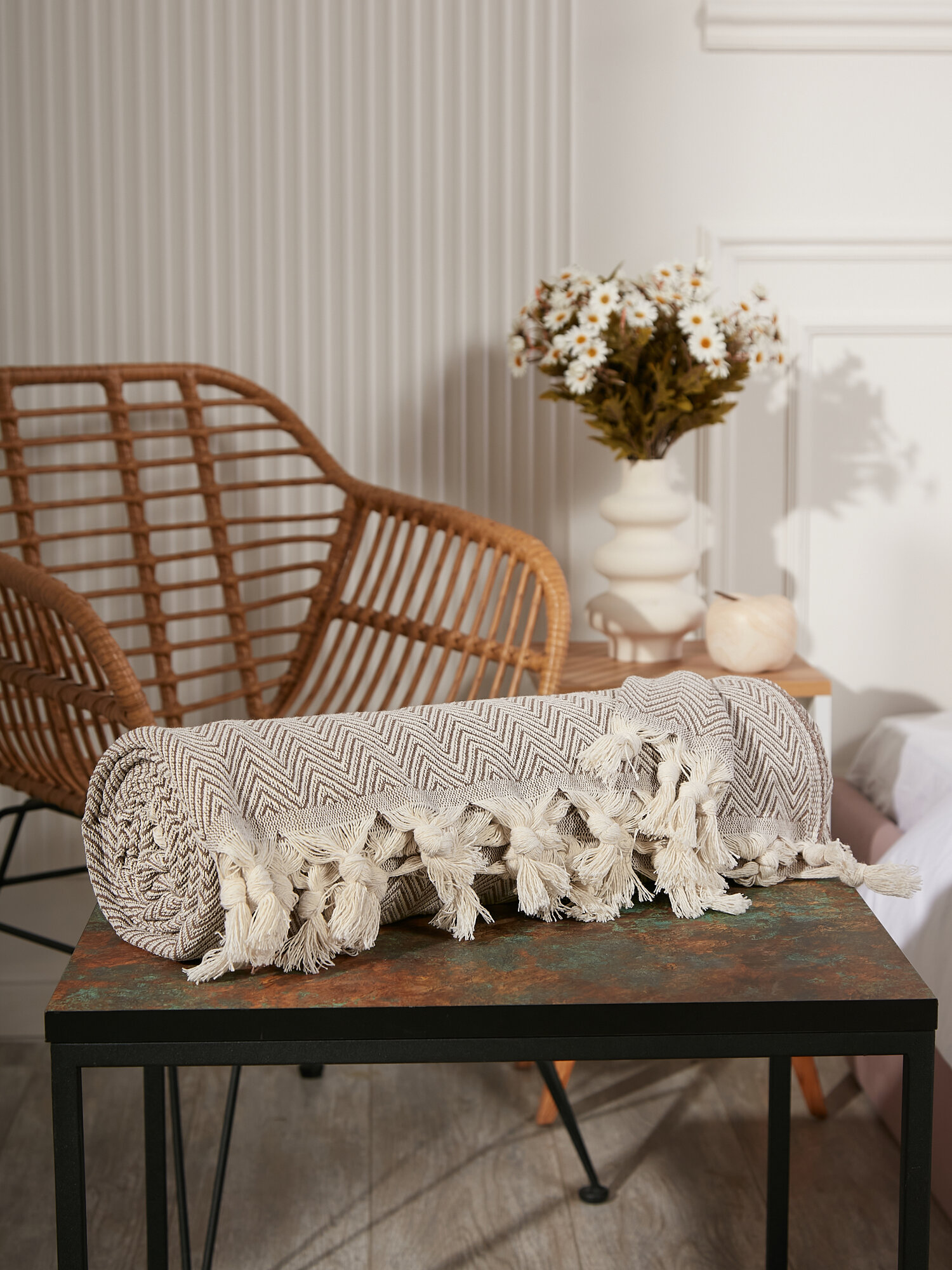 Хлопковый плед-покрывало на кровать и диван, 200х230, бежевый, Турция