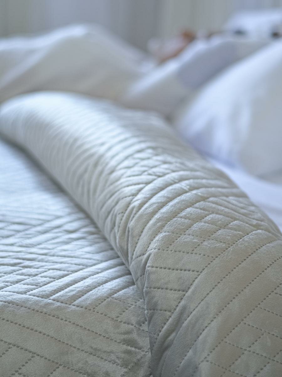 Покрывало IRIS "Геометрия", двустороннее, велюровое, стеганое, 200 см x 240 см, белое