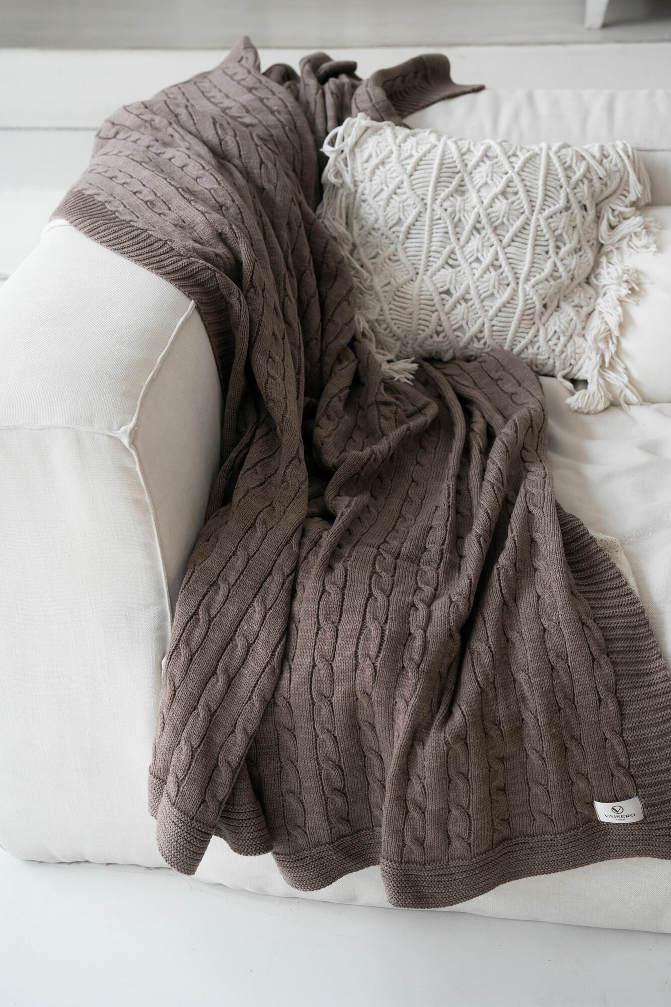 Купить Плед VAISERO Home, акриловый, вязаный, серо-коричневый, 130 см x 170 см