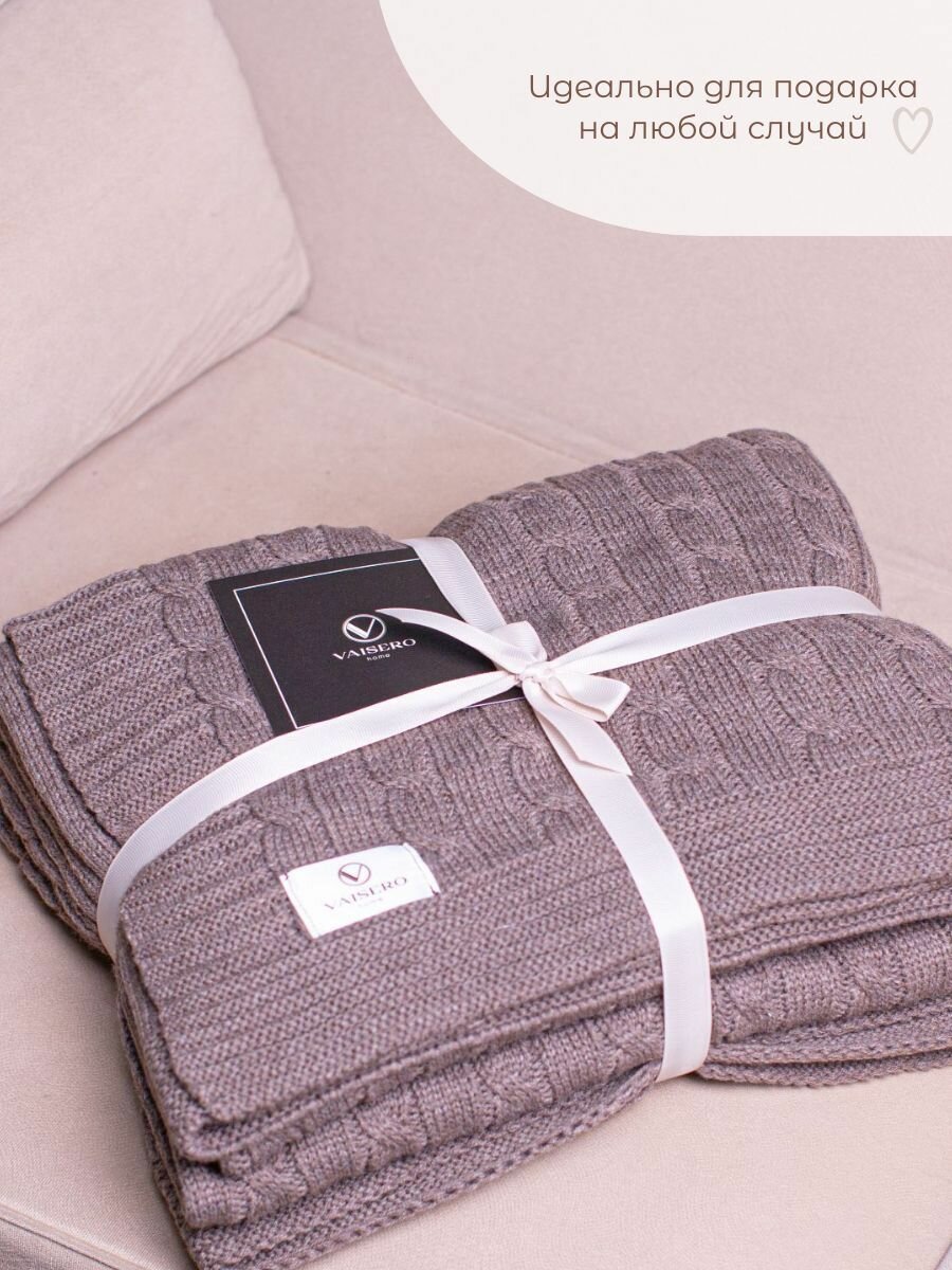 Плед VAISERO Home, акриловый, вязаный, серо-коричневый, 130 см x 170 см интересное: