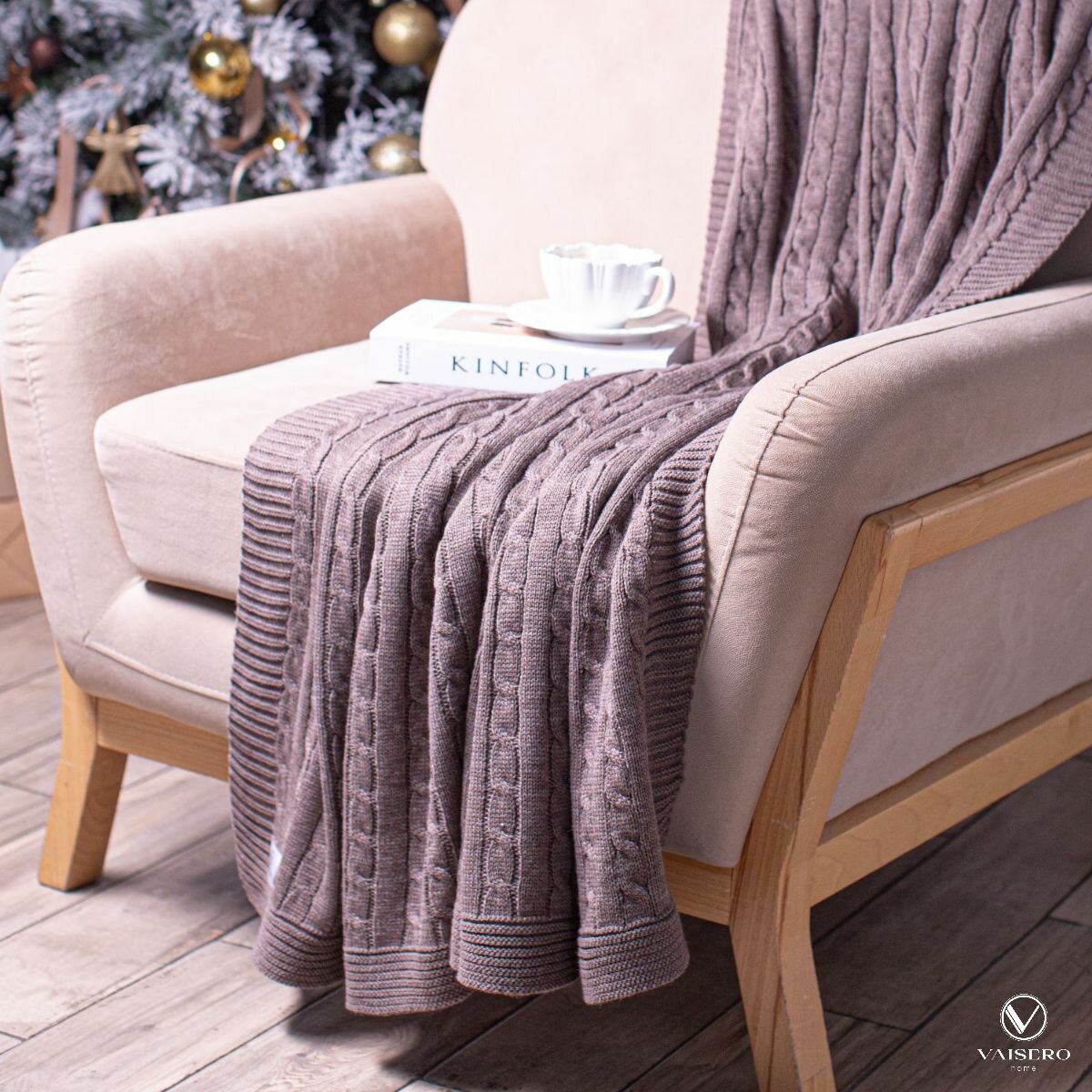 Плед VAISERO Home, вязаный, бежевый, акрил, 130x170см