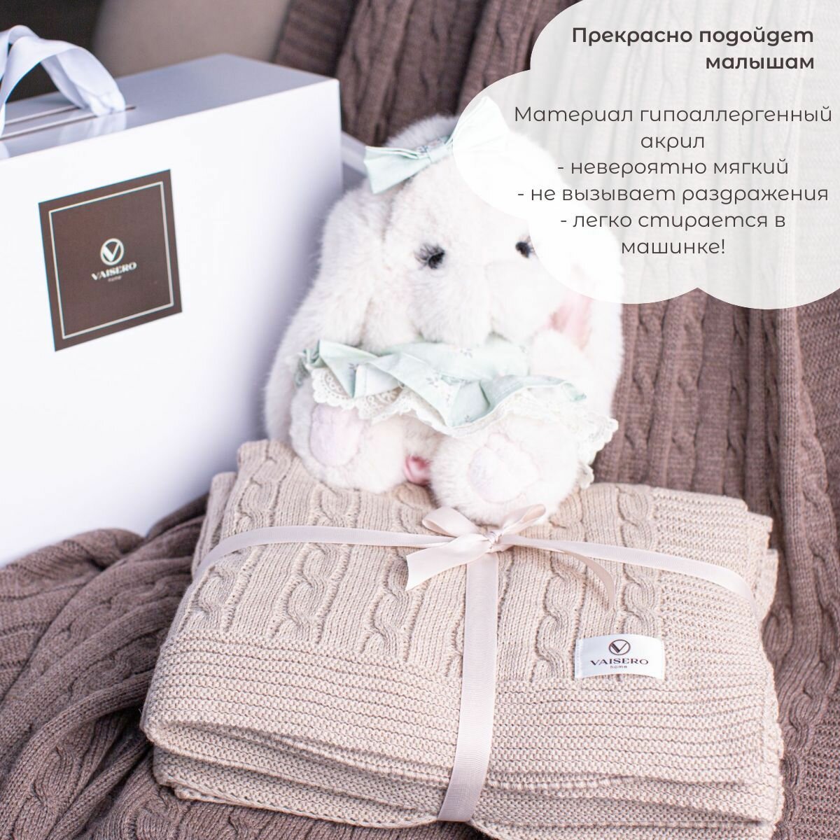 Купить Плед VAISERO Home, вязаный, бежевый, акрил, 130x170см