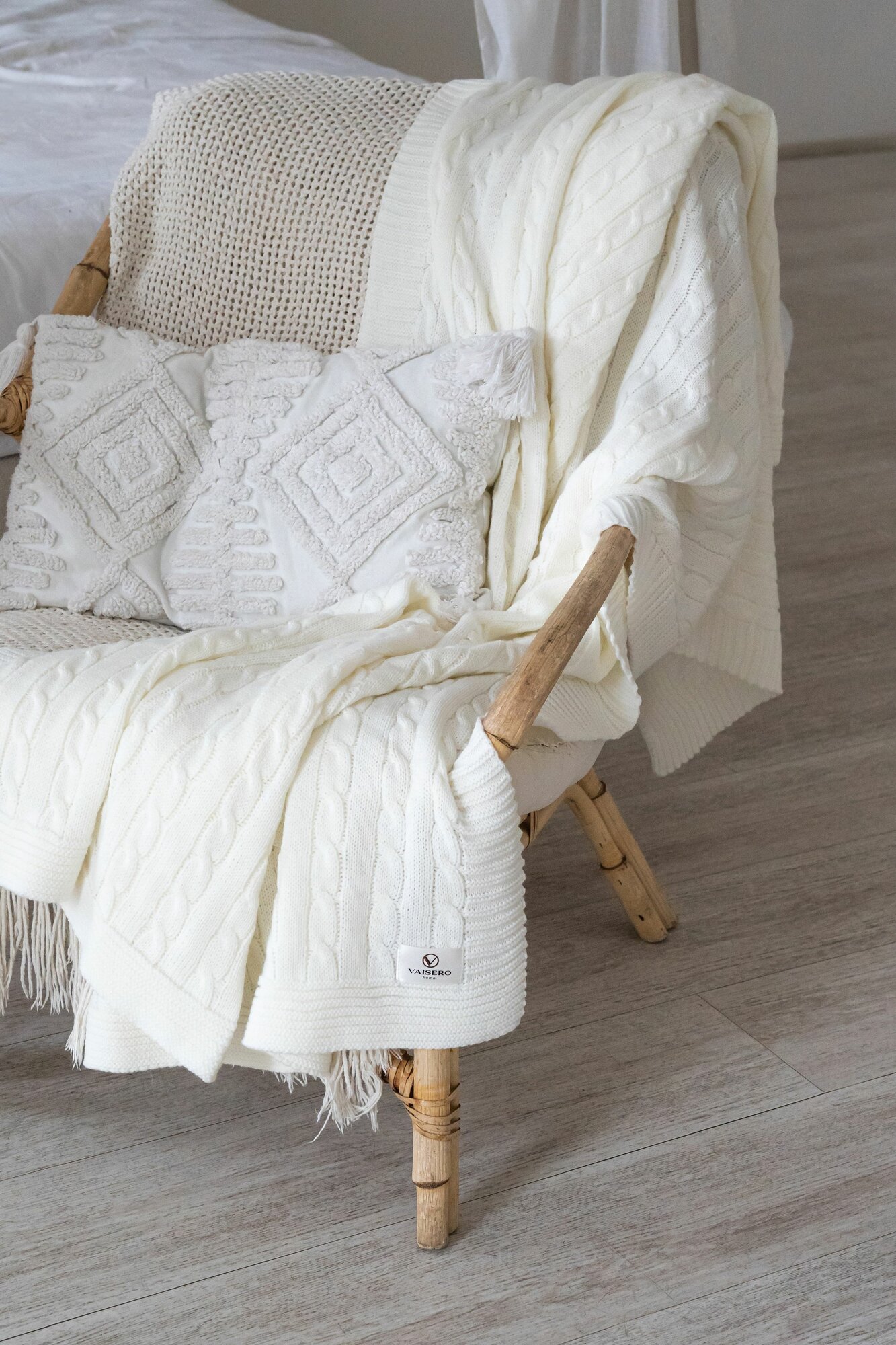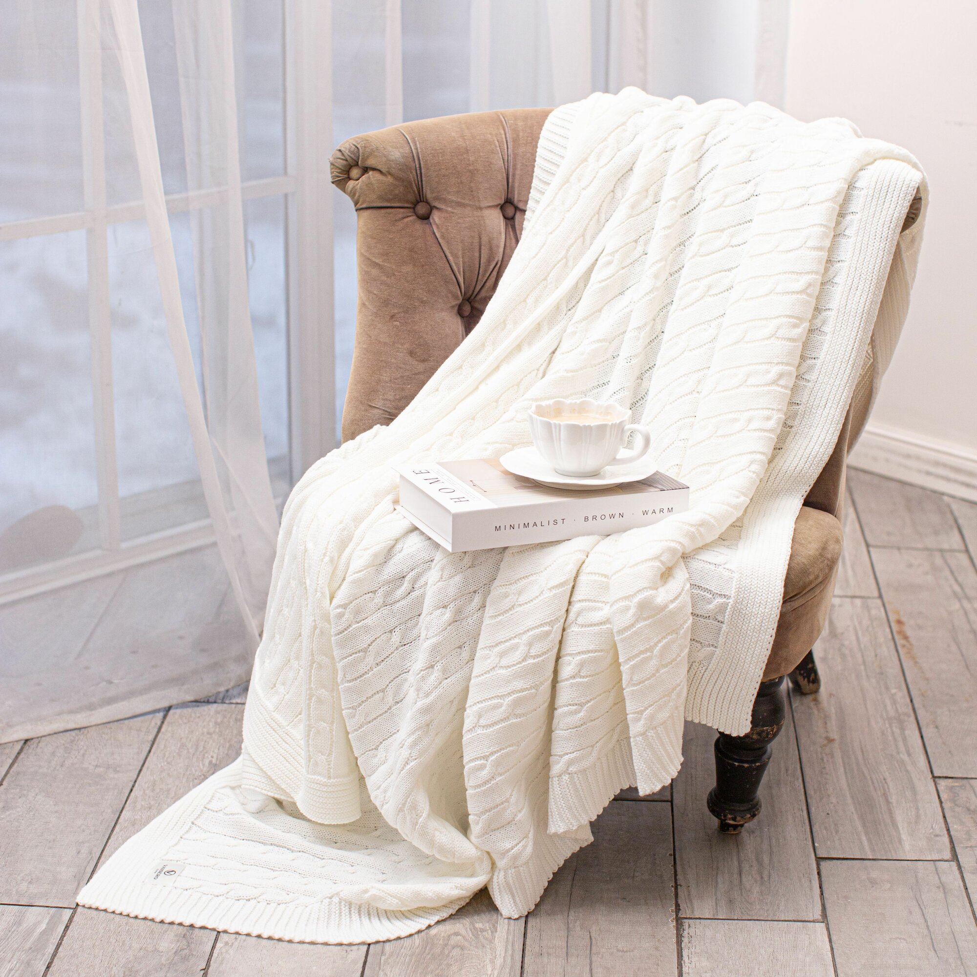 Плед VAISERO Home, молочный, акрил, вязаный, 130x170см интересное: