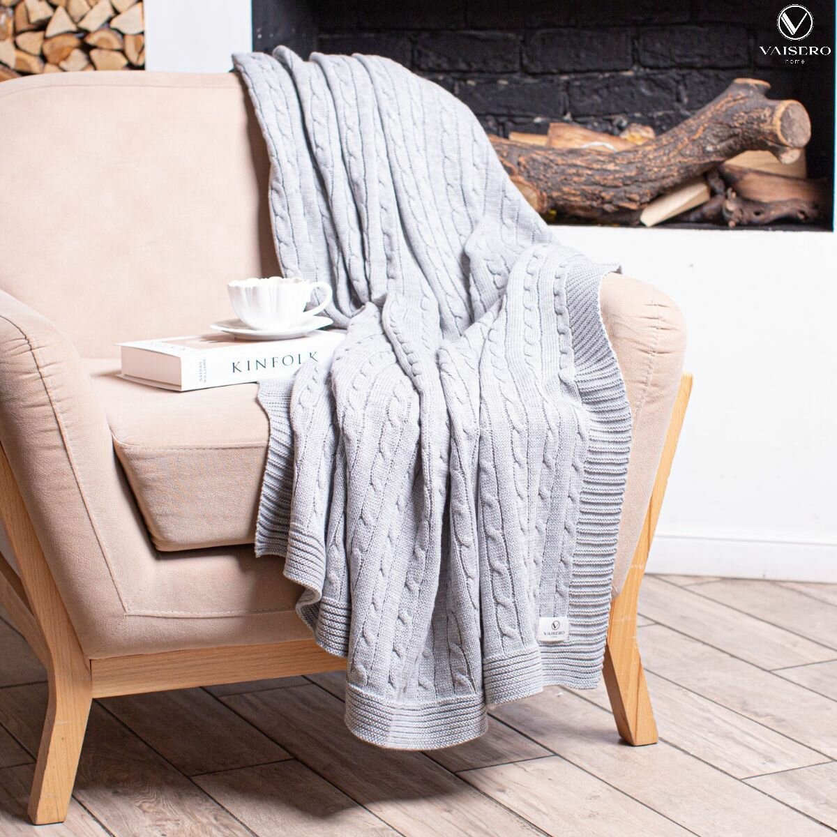 Плед VAISERO Home, вязаный, акрил, светло-серый, 170х130см интересное: