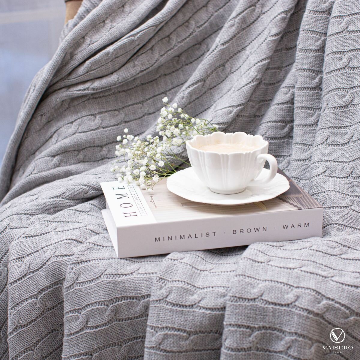 Купить Плед VAISERO Home, вязаный, акрил, светло-серый, 170х130см