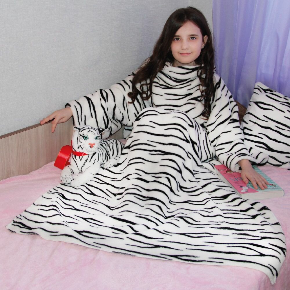 Купить Плед с рукавами "НаходкаУпак" Велсофт Тигровый Белый 80х160см