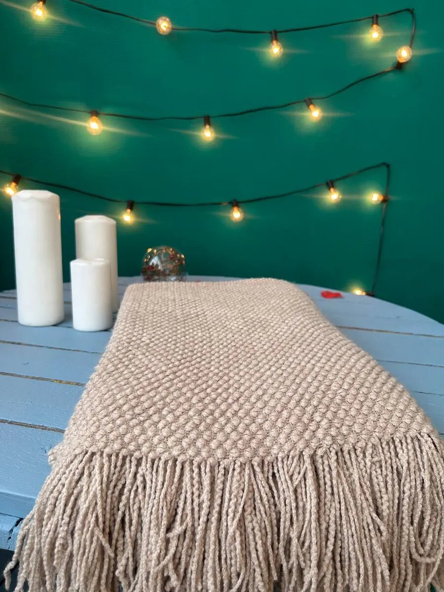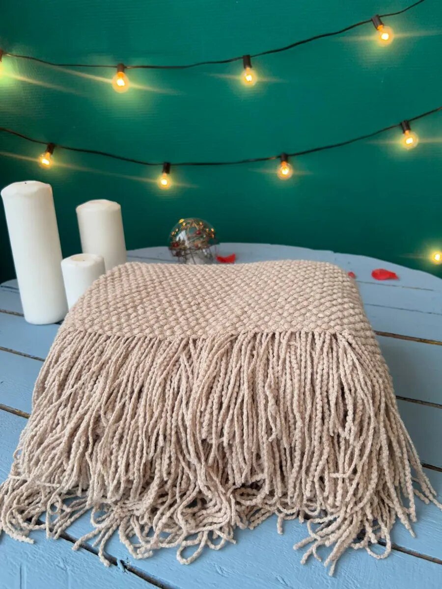 Плед Evium на диван вязаный 127х170 см с бахромой, скандинавский стиль
