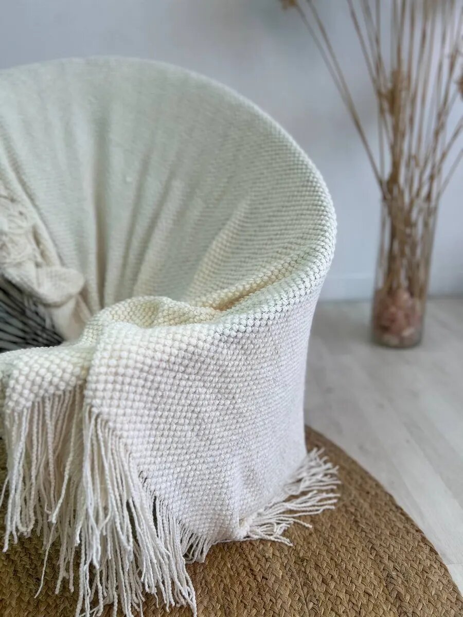 Купить Плед Evium на диван вязаный 127х170 см с бахромой, скандинавский стиль
