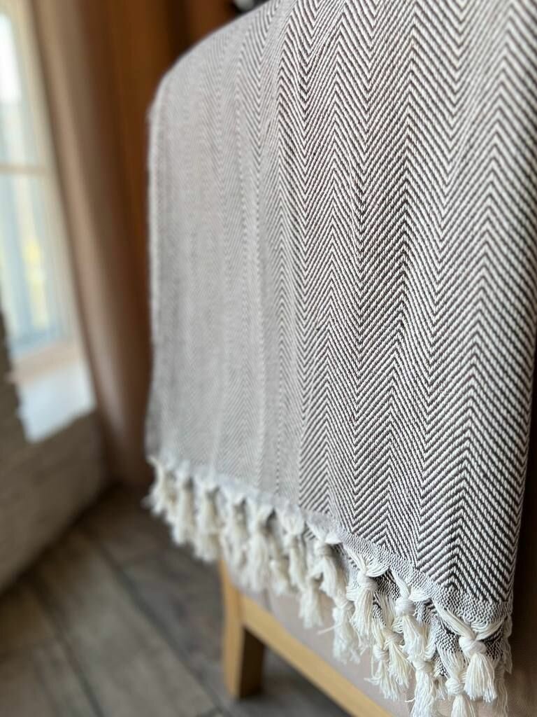 Плед из хлопка двуспальный, 180*200см, теплый с бахромой на диван и кровать, Gray Tweed