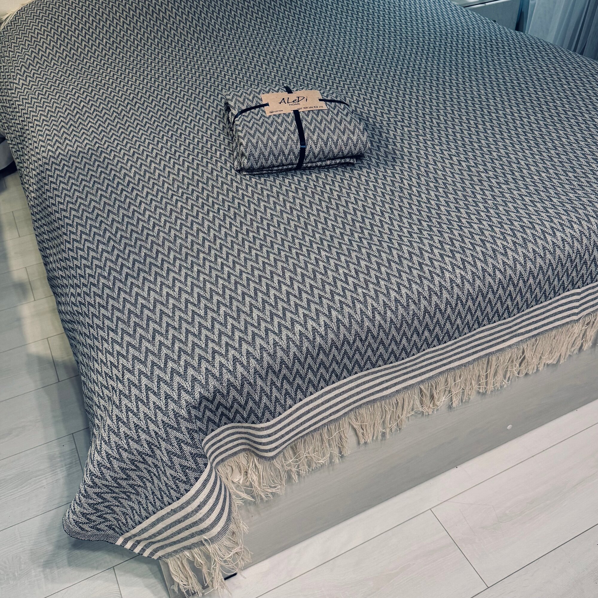 Плед Aledi Home Зигзаг, хлопок, 220 см x 240 см, двухсторонний, с бахромой и кисточками