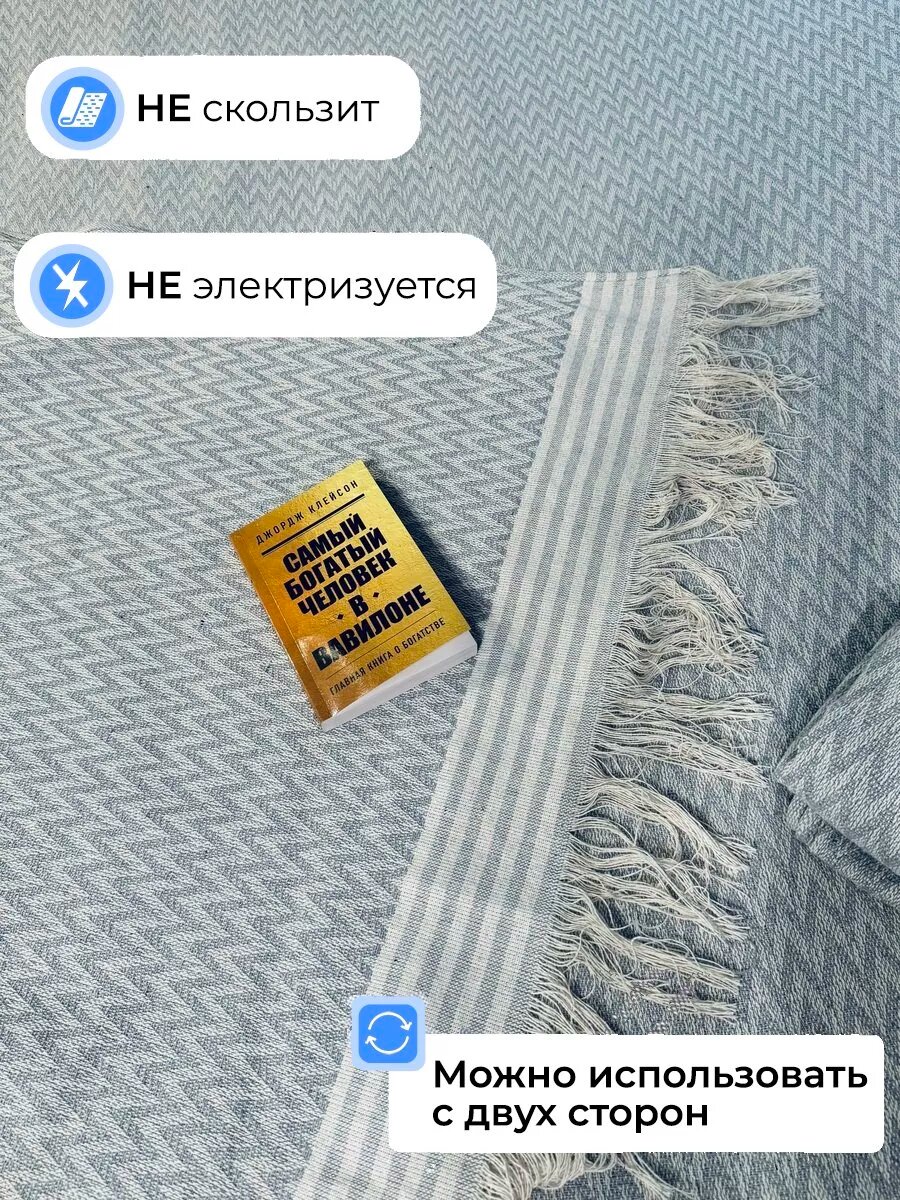 Плед Aledi Home Зигзаг, хлопок, 220 см x 240 см, двухсторонний, с бахромой и кисточками интересное: