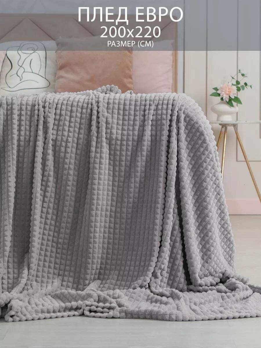 Плед "Кубики" евростандарт размером 200х220 см, Велсофт, Серый интересное: