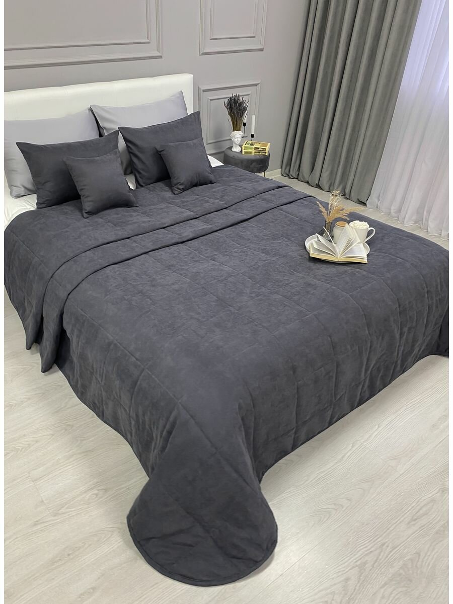 Купить Покрывало на кровать стеганое 220х240 см канвас IRISHOME, графит