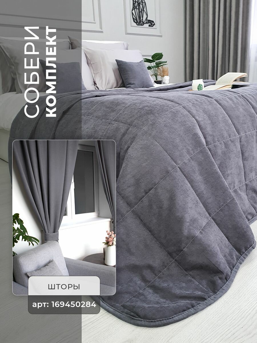 СохранитьПокрывало на кровать стеганое 220х240 см канвас IRISHOME, графит интересное: