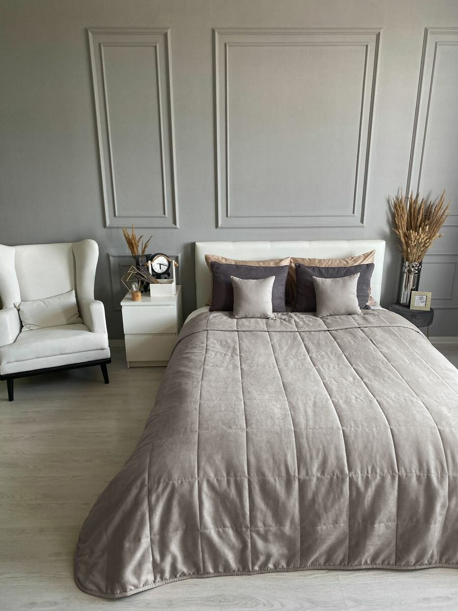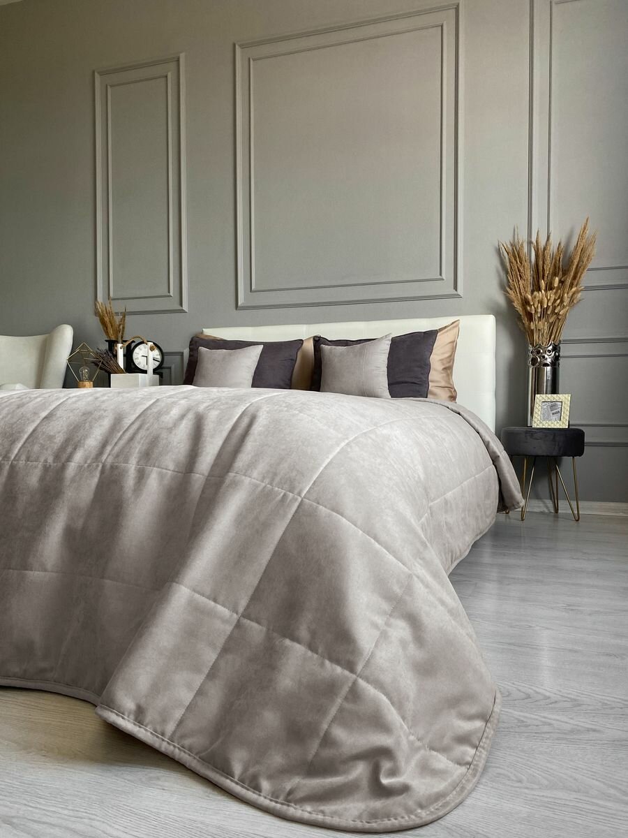 СохранитьПокрывало на кровать стеганое 220х240 см канвас IRISHOME, серо-бежевое интересное: