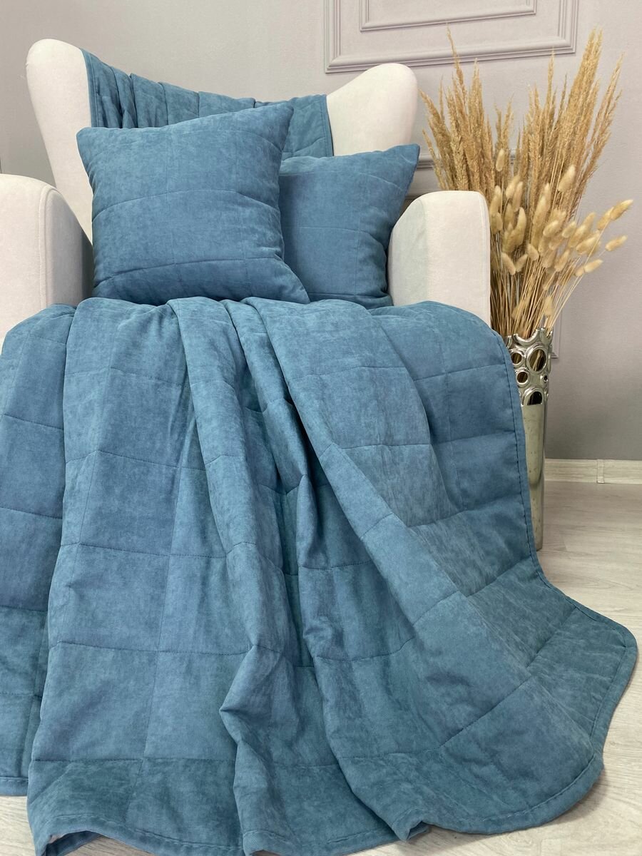 Покрывало на кровать стеганое 220х240 см канвас IRISHOME, лазурное
