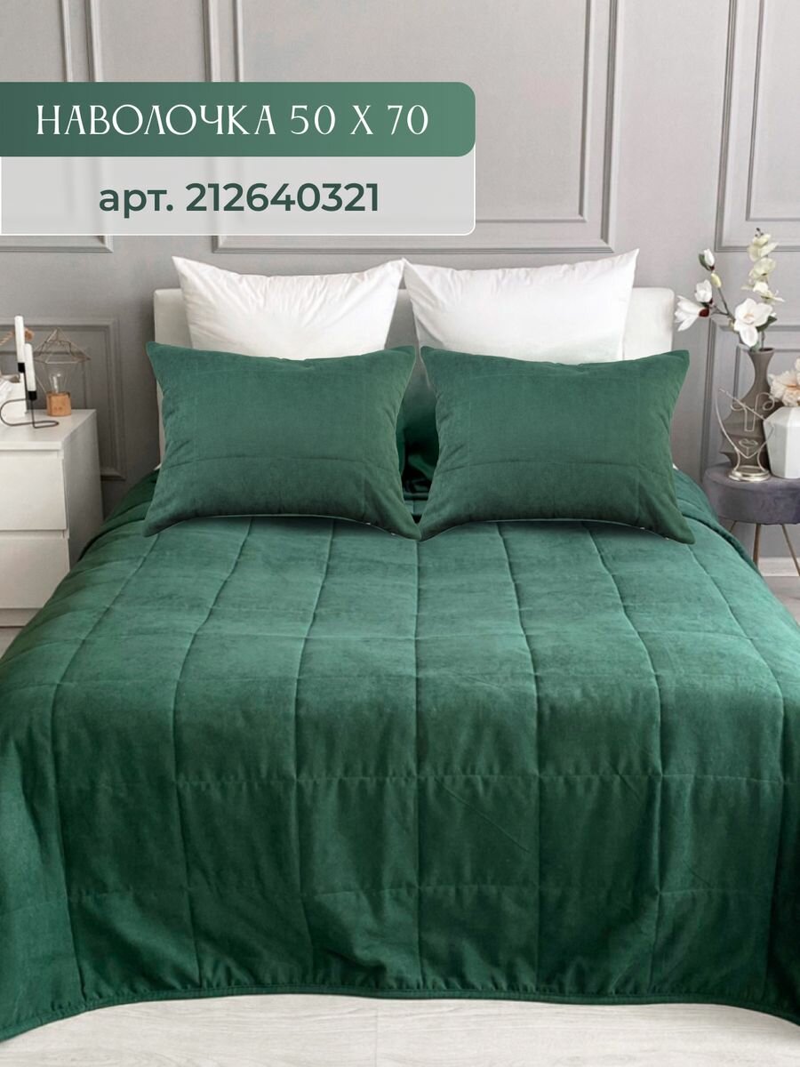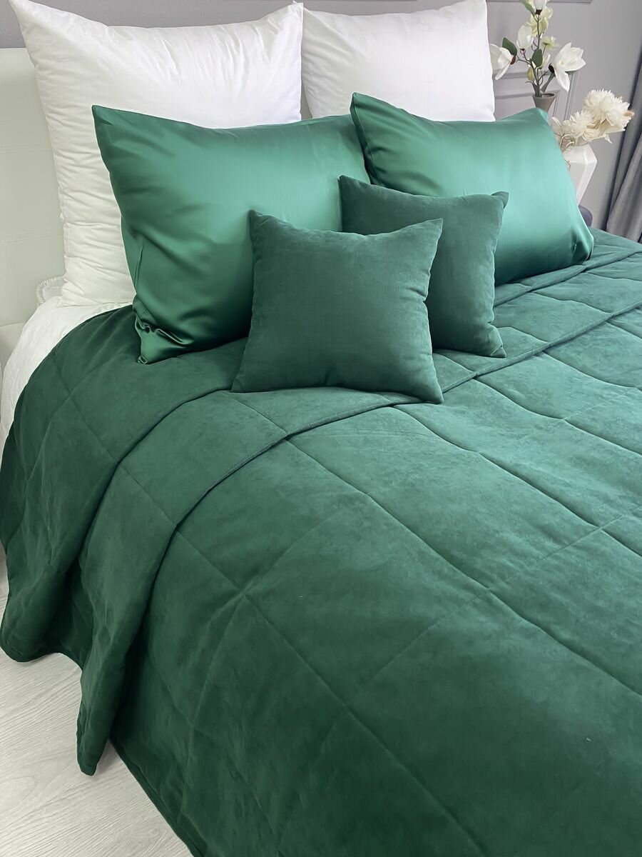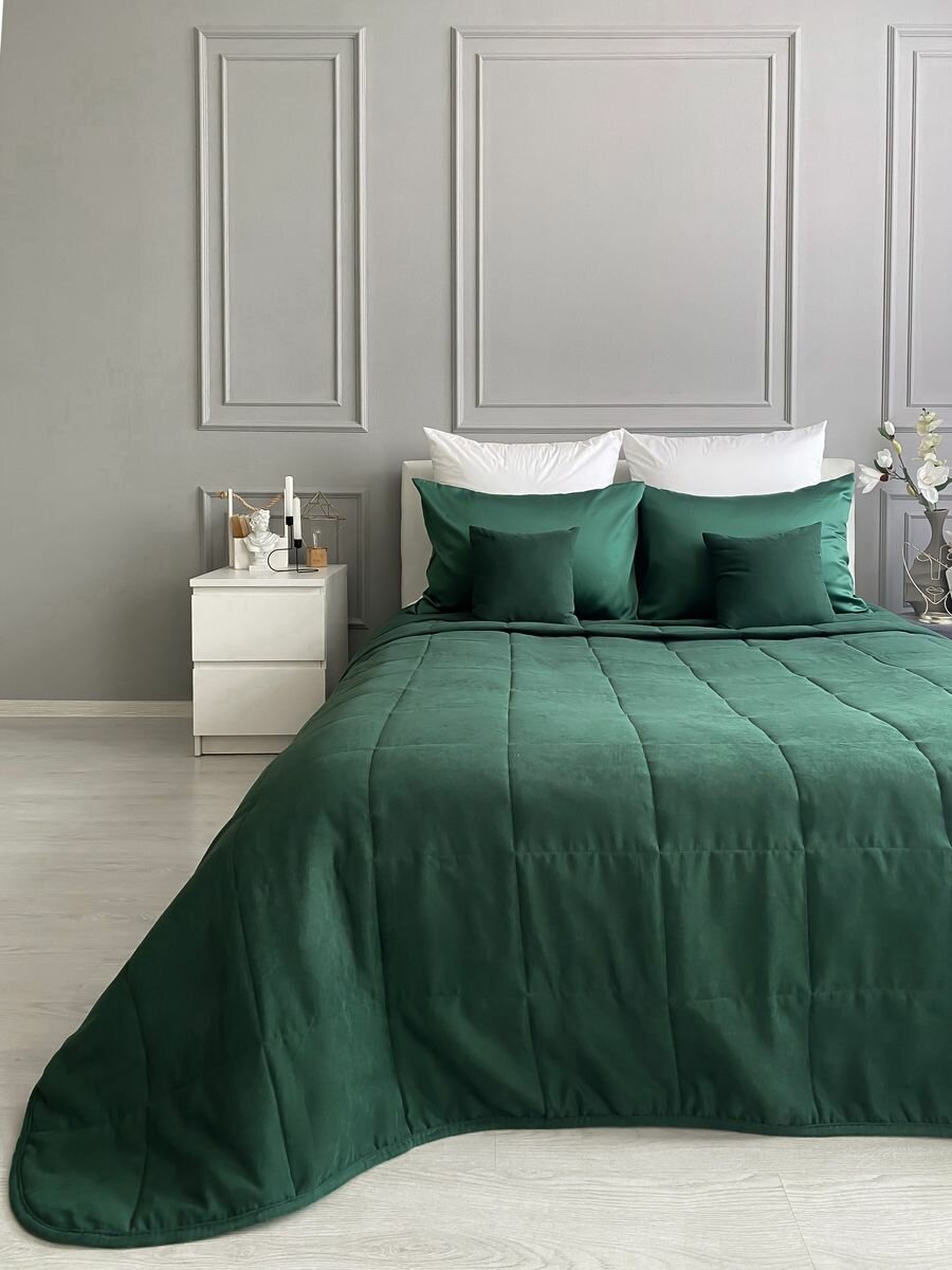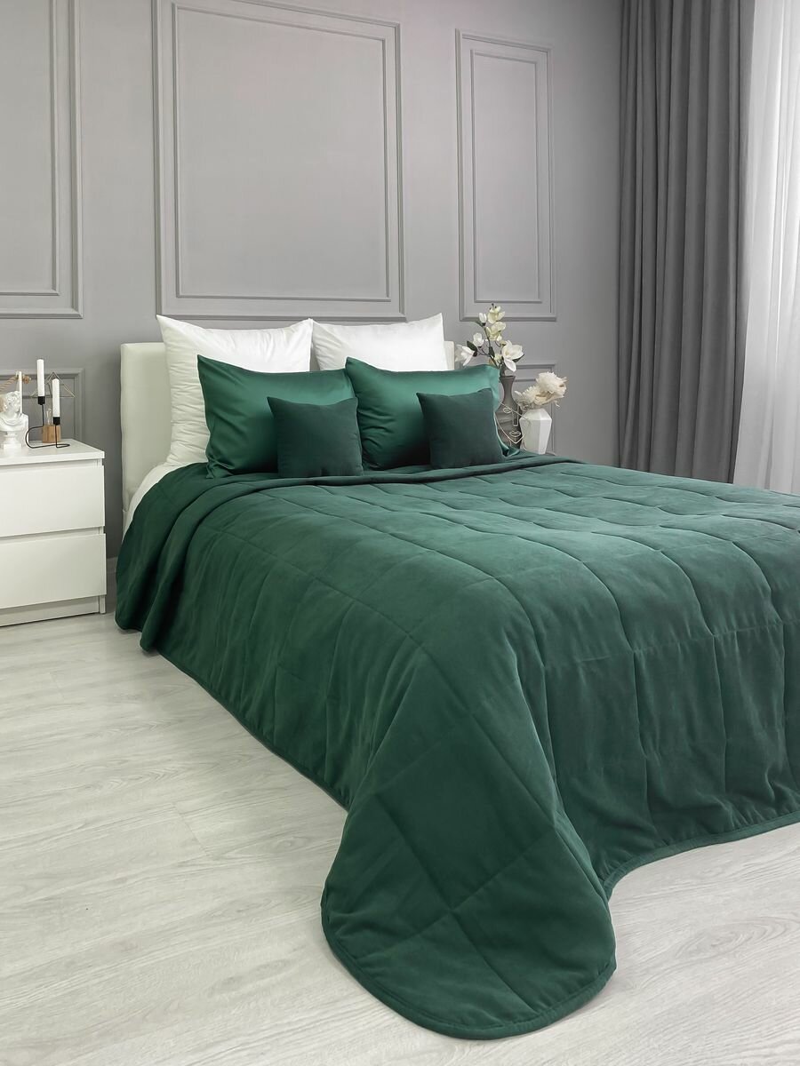 Покрывало на кровать стеганое 220х240 см канвас IRISHOME, изумрудное