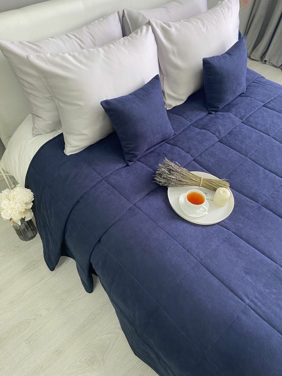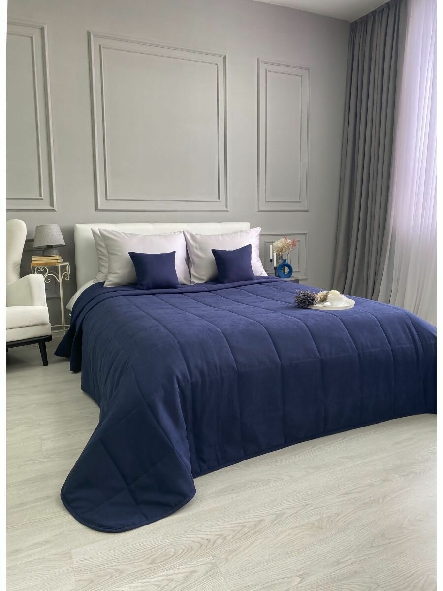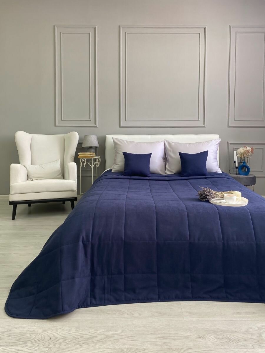 Купить Покрывало на кровать стеганое 220х240 см канвас IRISHOME, темно-синее