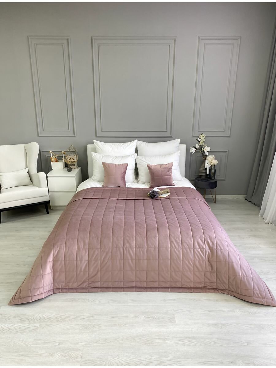 Купить Покрывало на кровать бархатное 220х240 см, IRISHOME, розовое, двухстороннее