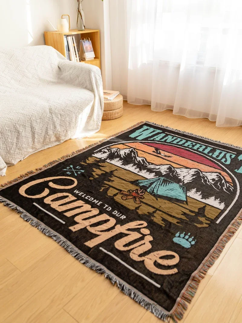 Купить Плед Yue Youpin "Кемпинг в снежных горах", хлопок, двусторонний, с бахромой