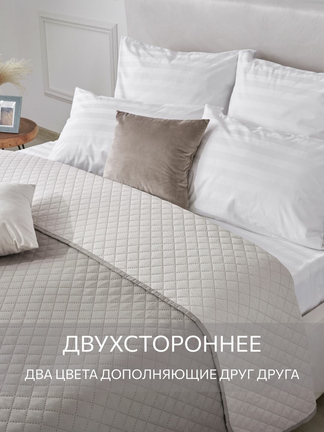 Купить Покрывало стеганое двустороннее, Guten Morgen, Милан, Макиато, Евро, 210х240 см , ультрастеп