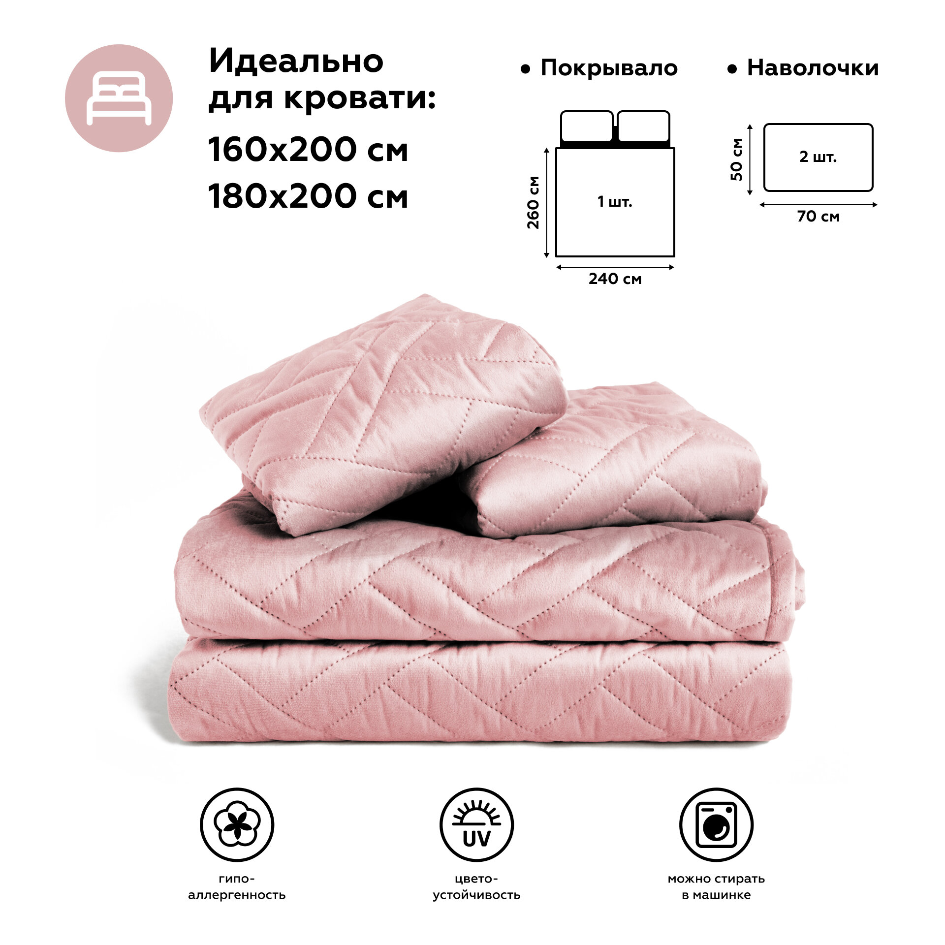 Покрывало на кровать евро MAXI ADRIA ROSE, с наволочками, велюр интересное:
