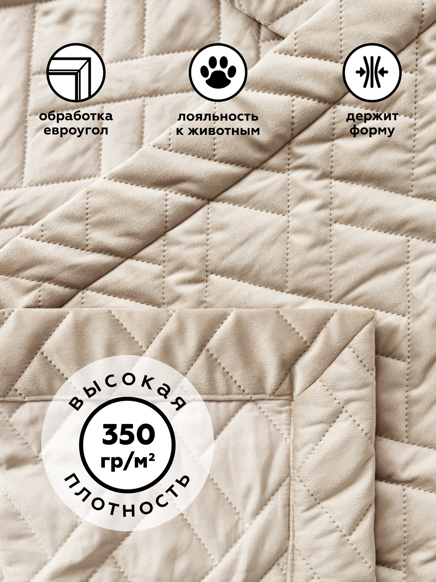Покрывало на кровать с наволочками MAXI ADRIA BEIGE, стеганое, велюр